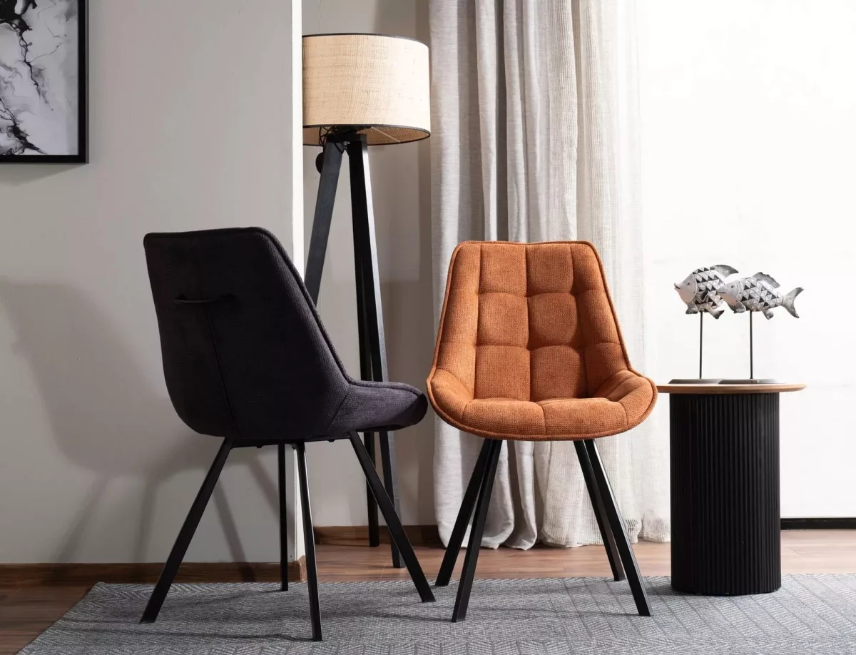 Modern és kényelmes étkezőszék Vardo szövet kárpitozással és matt fekete fém vázzal. A steppelt háttámla és az ergonomikus kialakítás maximális kényelmet biztosít, miközben stílusos megjelenést kölcsönöz étkezőjének.