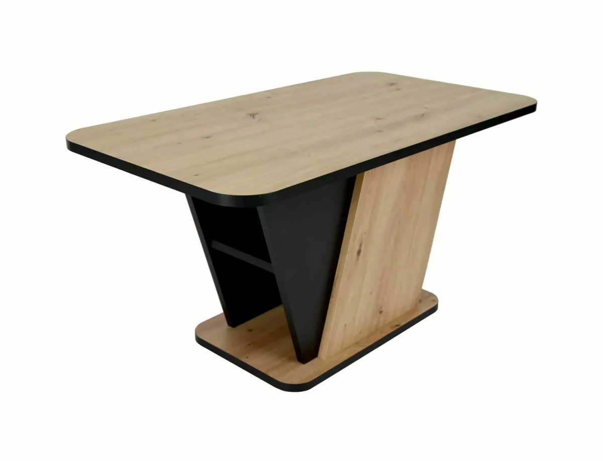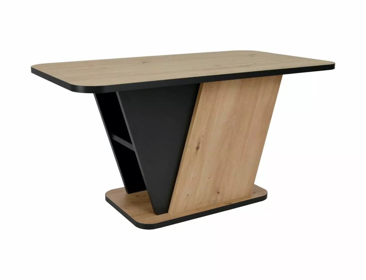 Modern vonalvezetésű Crocus dohányzóasztal, amely tökéletesen ötvözi az artisan tölgy és fekete színek eleganciáját. A V-alakú dizájn és a beépített tárolórekesz praktikus megoldást kínál a nappaliba.