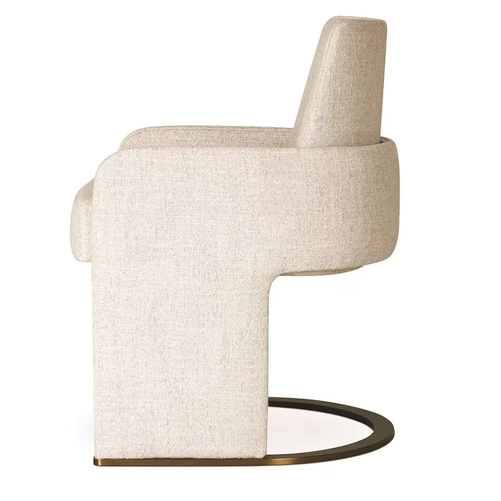 A Crystal kárpitozott szék a modern elegancia megtestesítője. A prémium minőségű bézs szövetkárpit és a kefés arany fém lábak tökéletes összhangot alkotnak. A szék egyedi formája és ergonomikus kialakítása biztosítja a maximális kényelmet. A magas minőségű habszivacs ülőpárna és a megerősített ülőfelület hosszú élettartamot garantál.