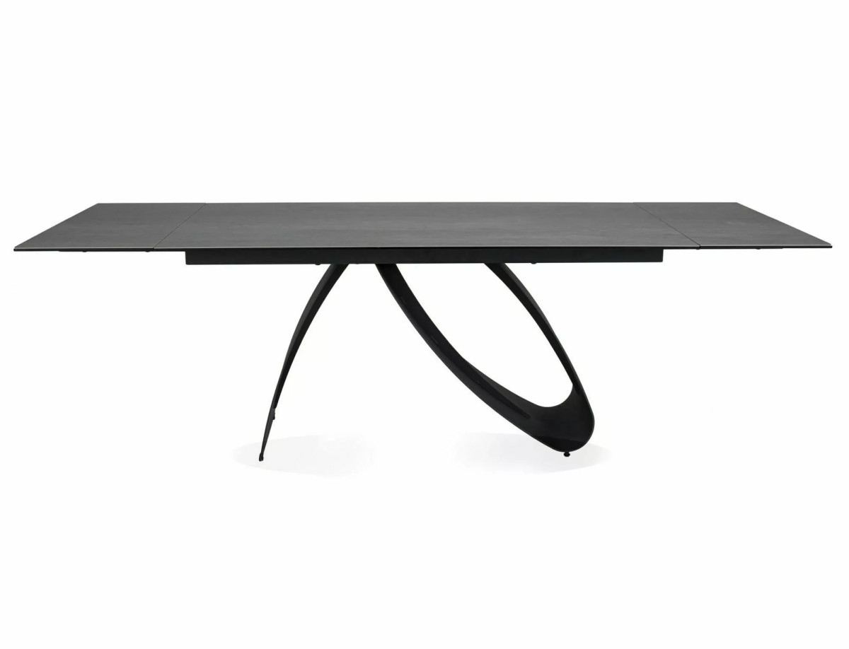 Modern, bővíthető étkezőasztal edzett üveg és kerámia asztallappal, elegáns matt fekete fém vázzal. A Pietra Di Savoia különleges dizájnja és praktikus kialakítása tökéletes választás akár 12 fő számára is.