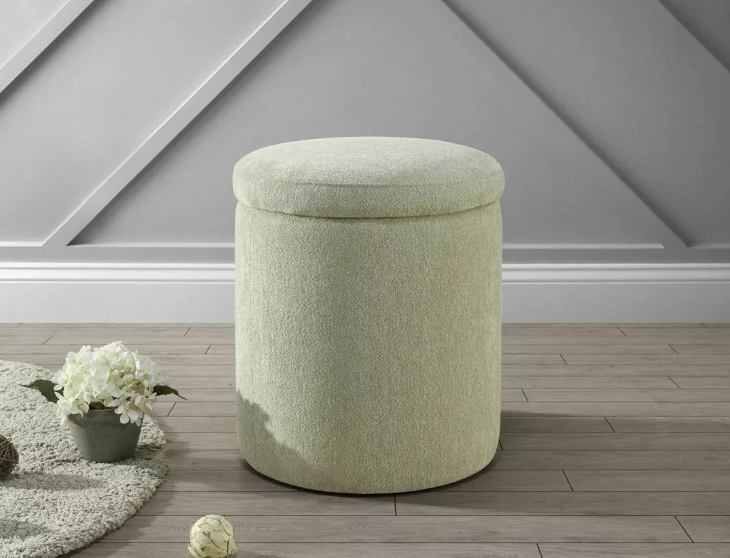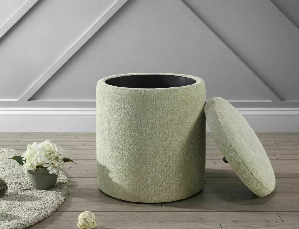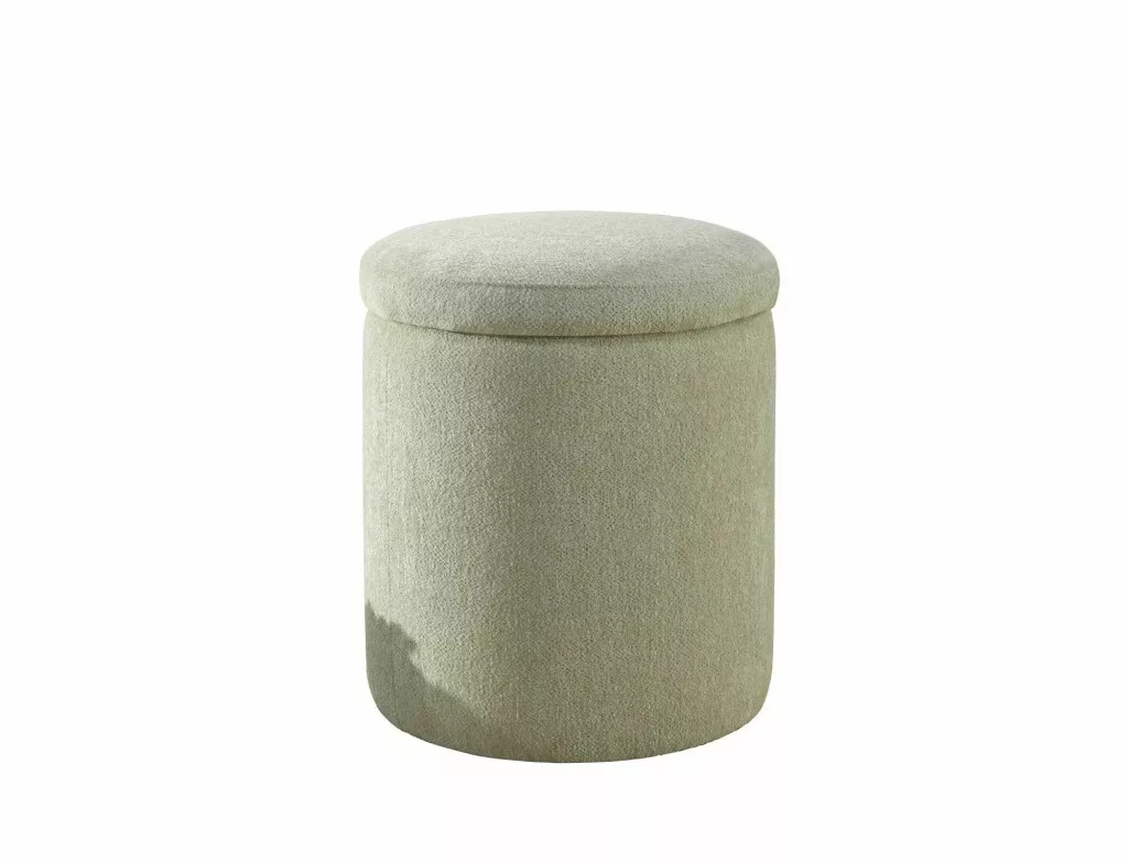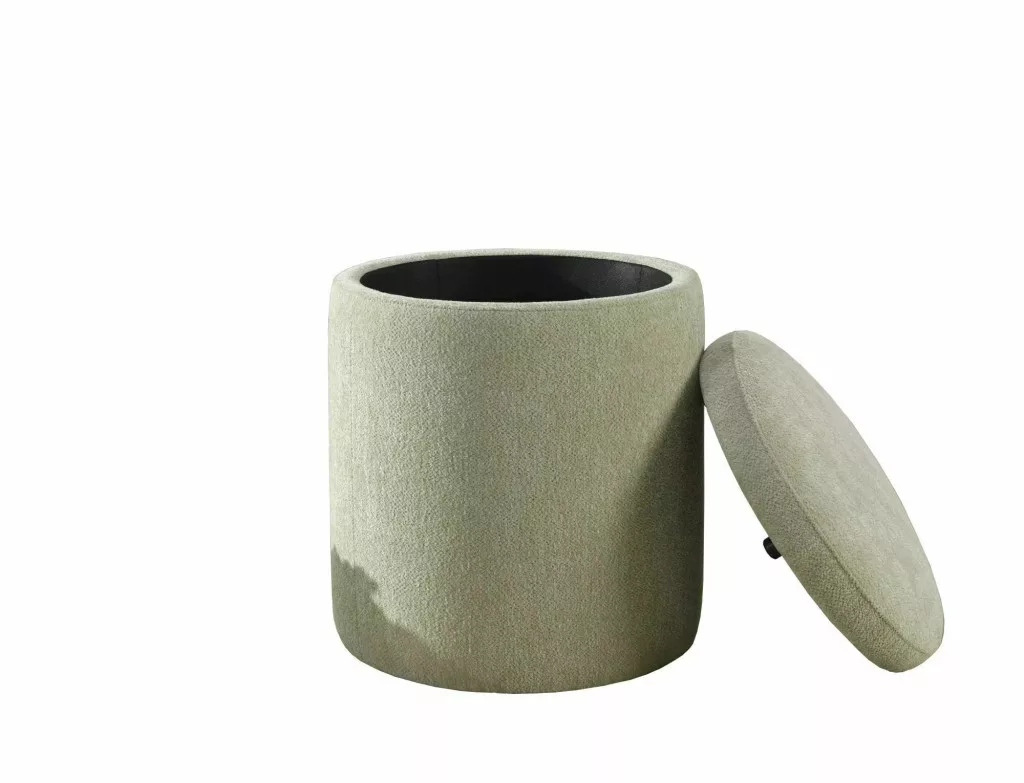 Elegáns, kör alakú tárolós puff Raven szövettel bevonva, amely tökéletes kiegészítője lehet nappalijának. A praktikus tárolóhellyel rendelkező ülőke maximum 50 kg terhelhetőséggel bír.