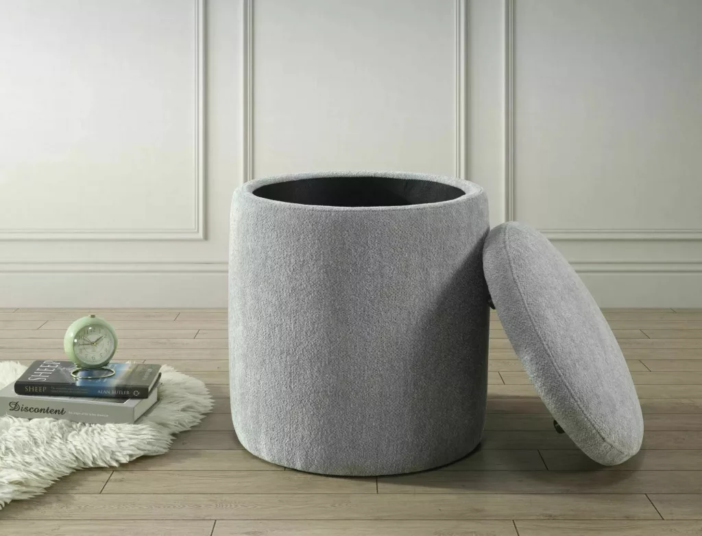 Flo Raven Tárolós Kerek Puff Szürke Szövet