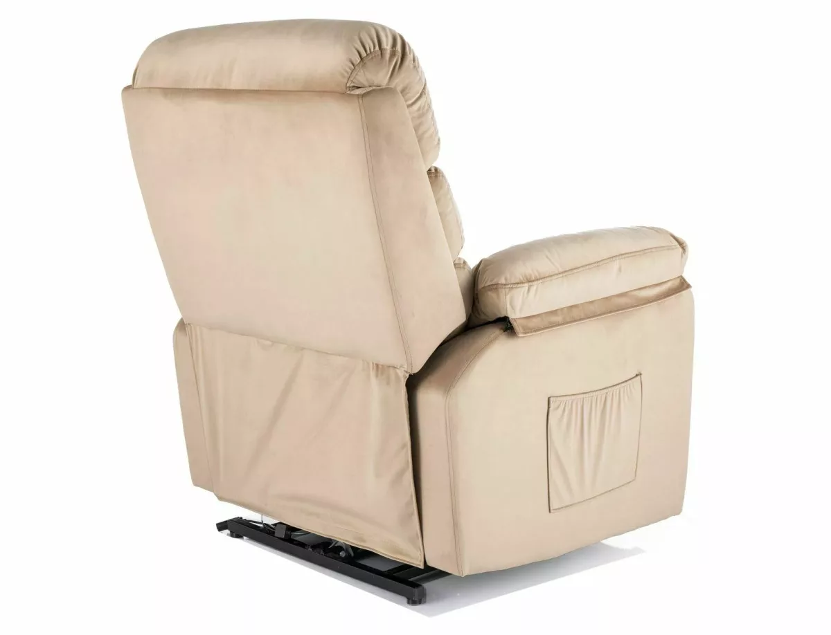 A Hektor M elektromos relax fotel a modern kényelem és funkcionalitás tökéletes ötvözete. A puha, bézs színű bársony kárpitozás és az ergonomikus kialakítás maximális komfortérzetet biztosít. A fotel elektromos vezérléssel dönthető, valamint beépített masszázsfunkcióval rendelkezik. A fém váz stabil alapot biztosít, míg a karfa praktikus tárolórekesszel van ellátva.