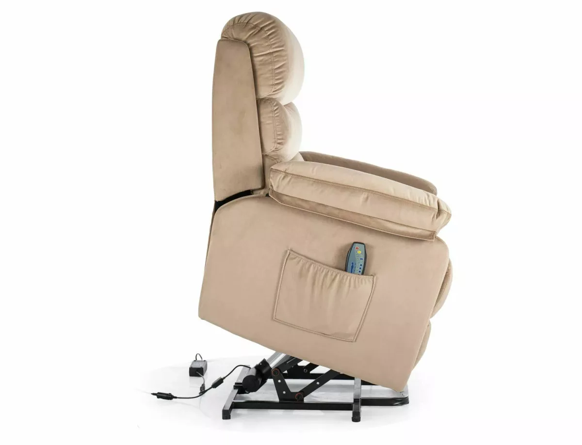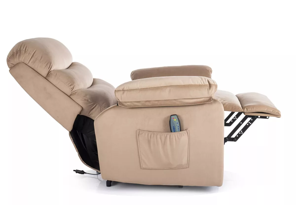 Hektor M Elektromos Bársony Relax Fotel Bézs Masszázsfunkcióval