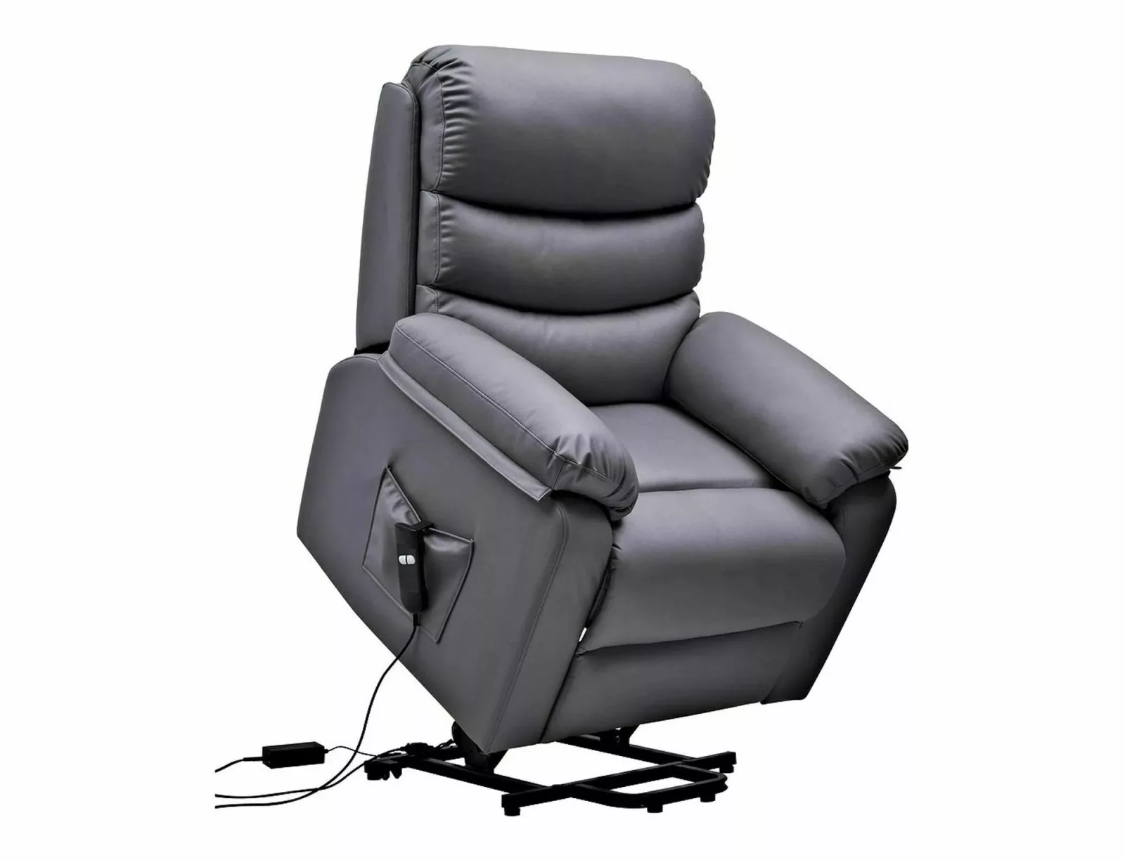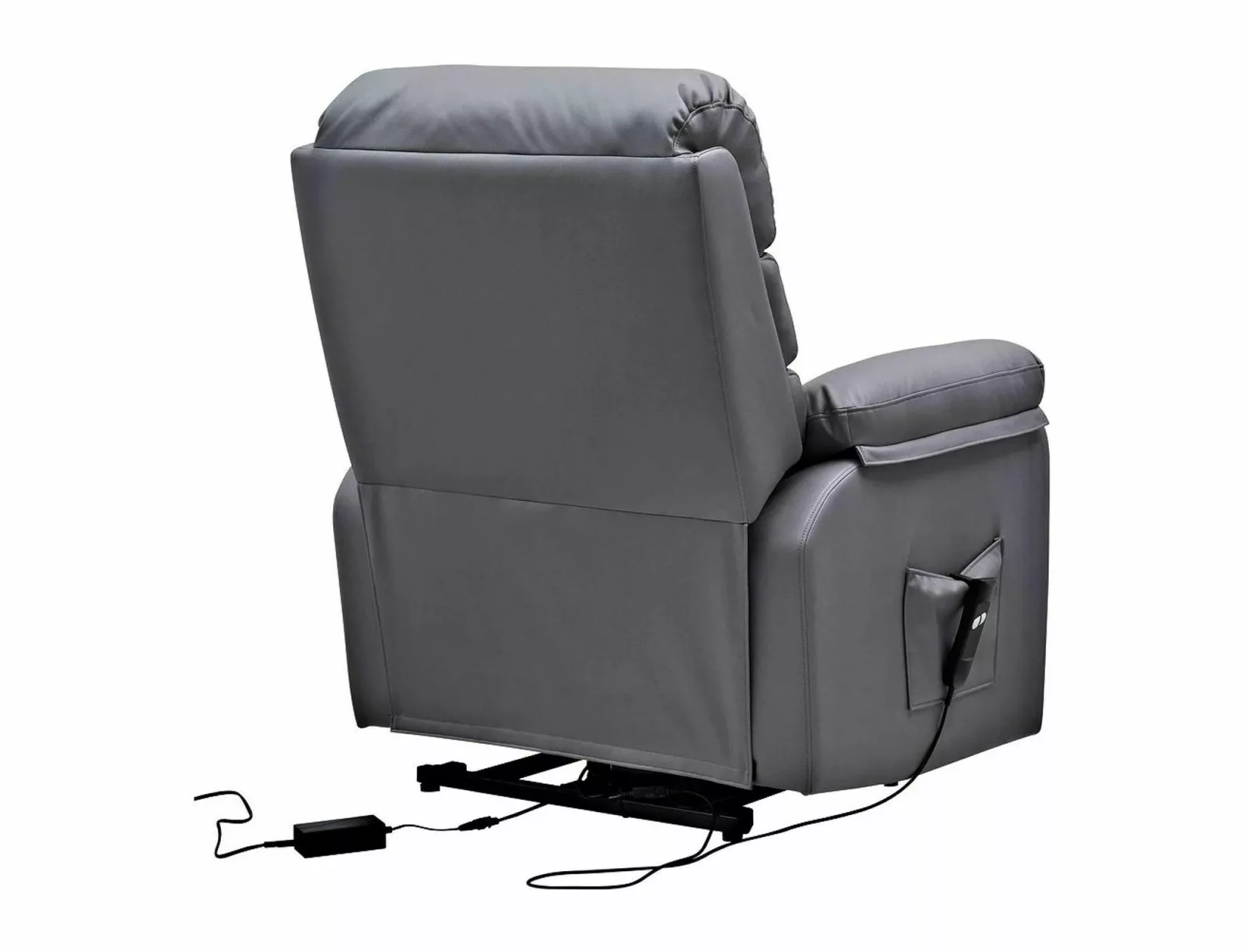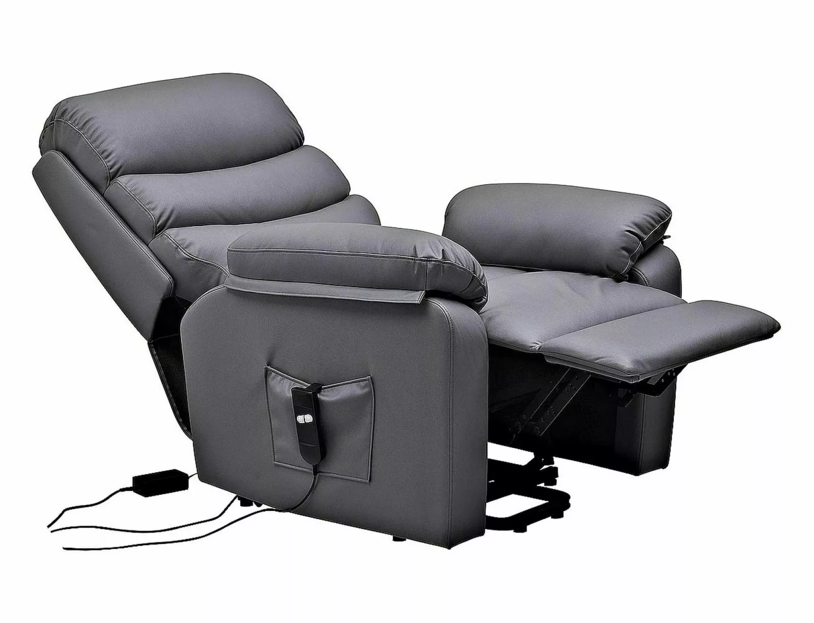 Luxus kényelmet nyújtó elektromos masszázsfotel felállást segítő funkcióval és állítható háttámlával. A szürke műbőr kárpitozású fotel tökéletes választás a mindennapi pihenéshez és relaxációhoz.