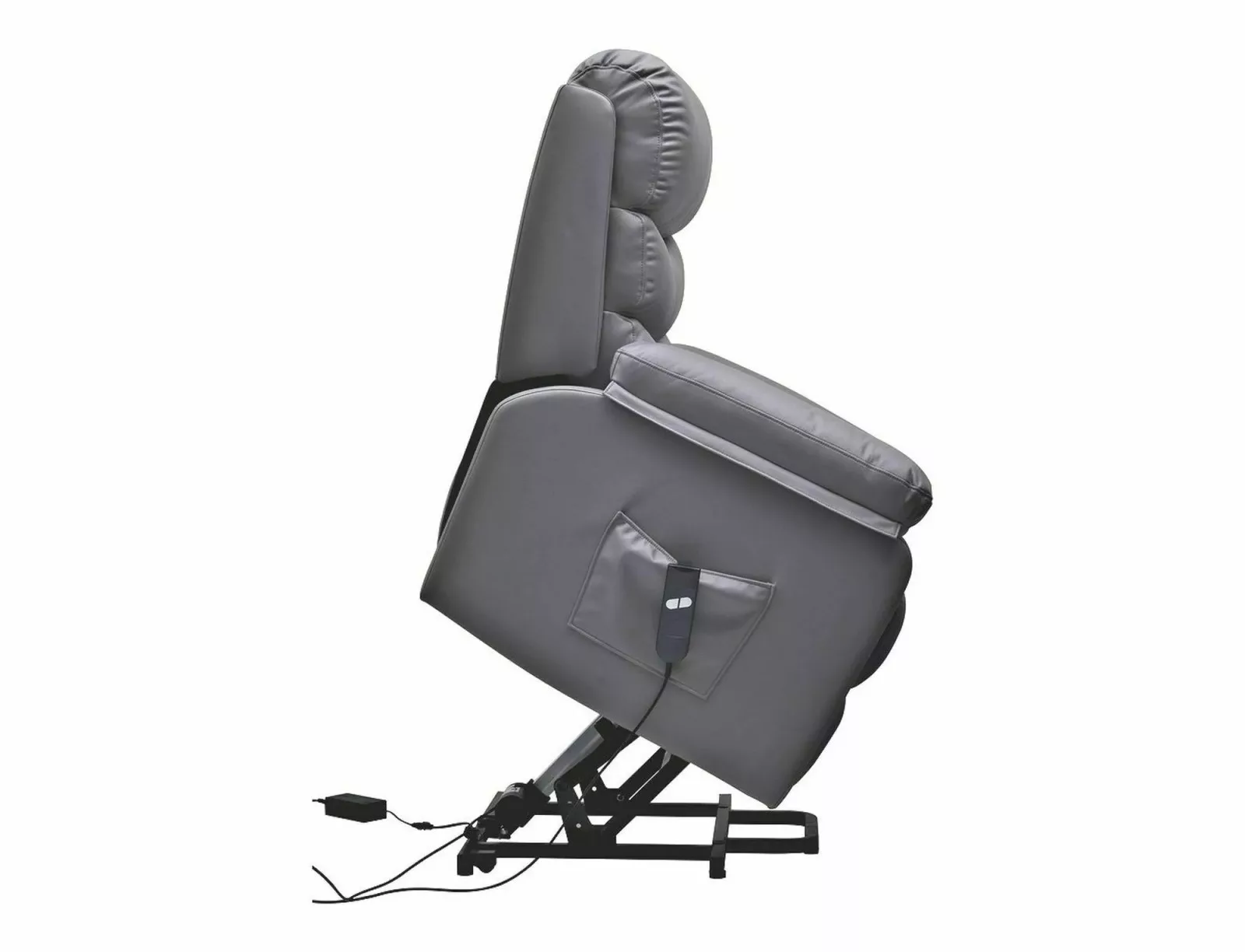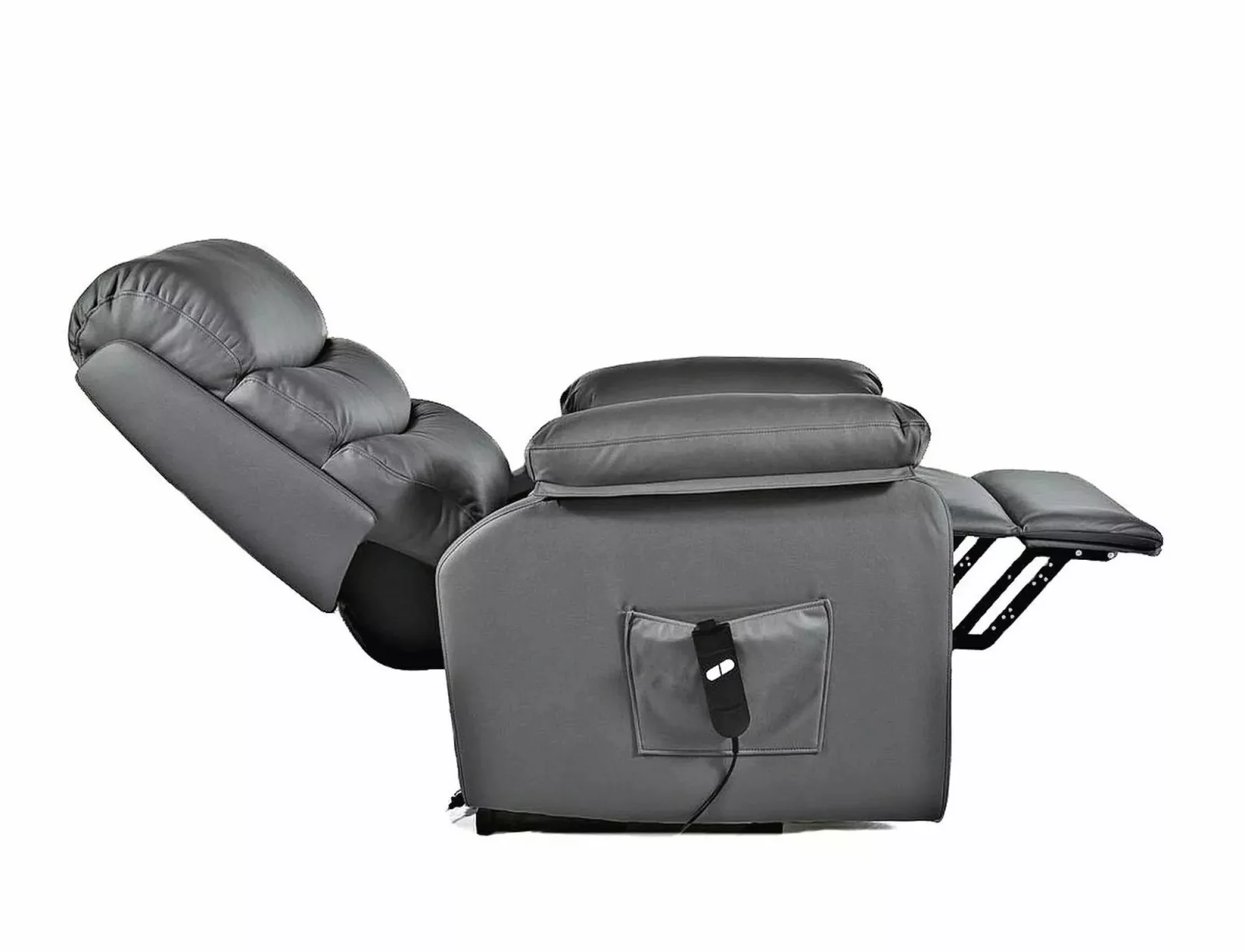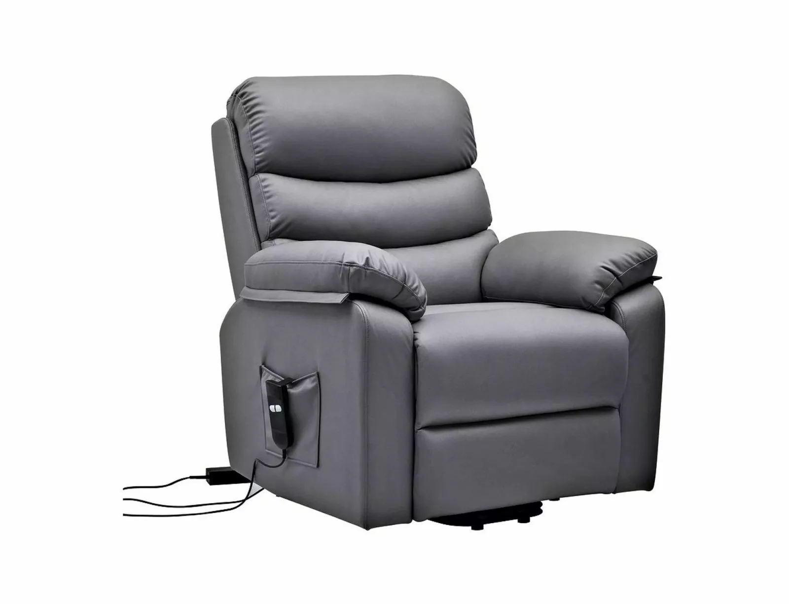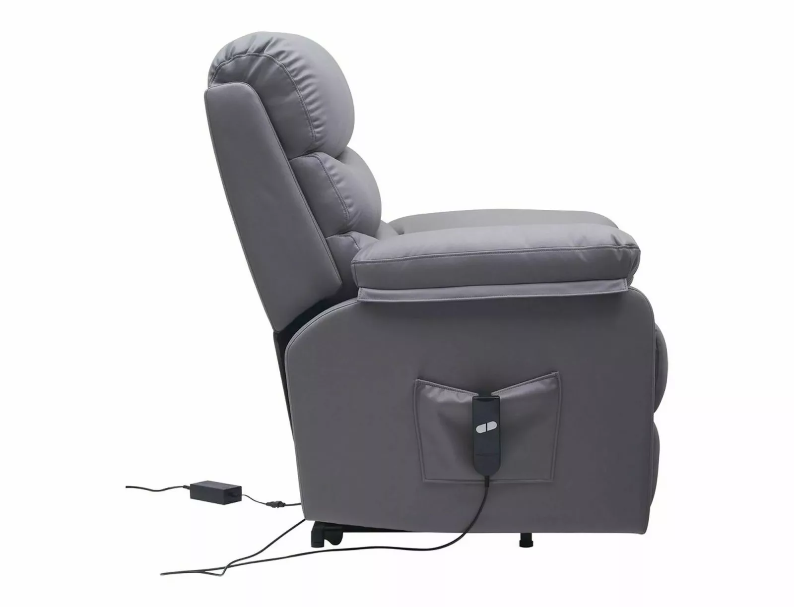 Luxus kényelmet nyújtó elektromos masszázsfotel felállást segítő funkcióval és állítható háttámlával. A szürke műbőr kárpitozású fotel tökéletes választás a mindennapi pihenéshez és relaxációhoz.