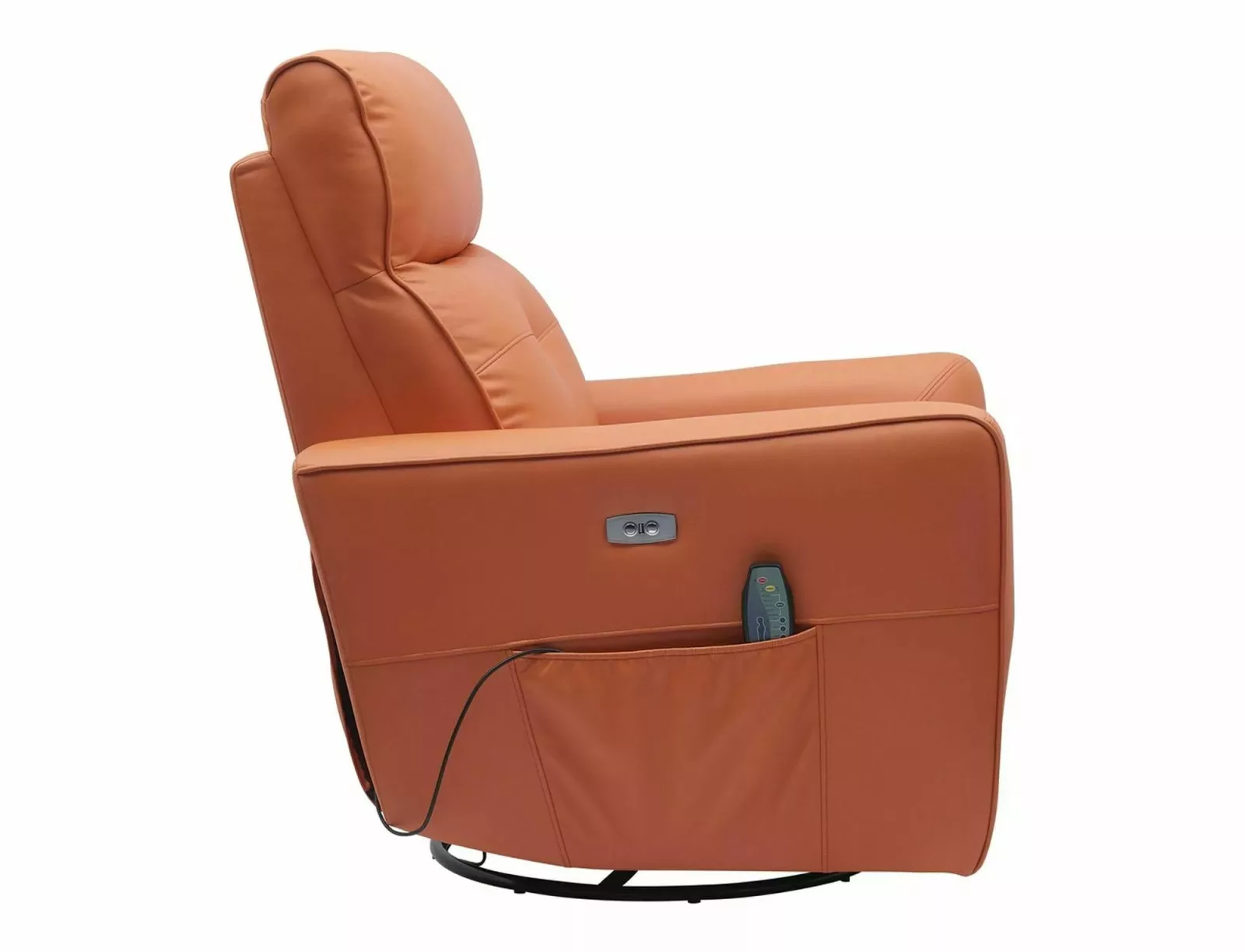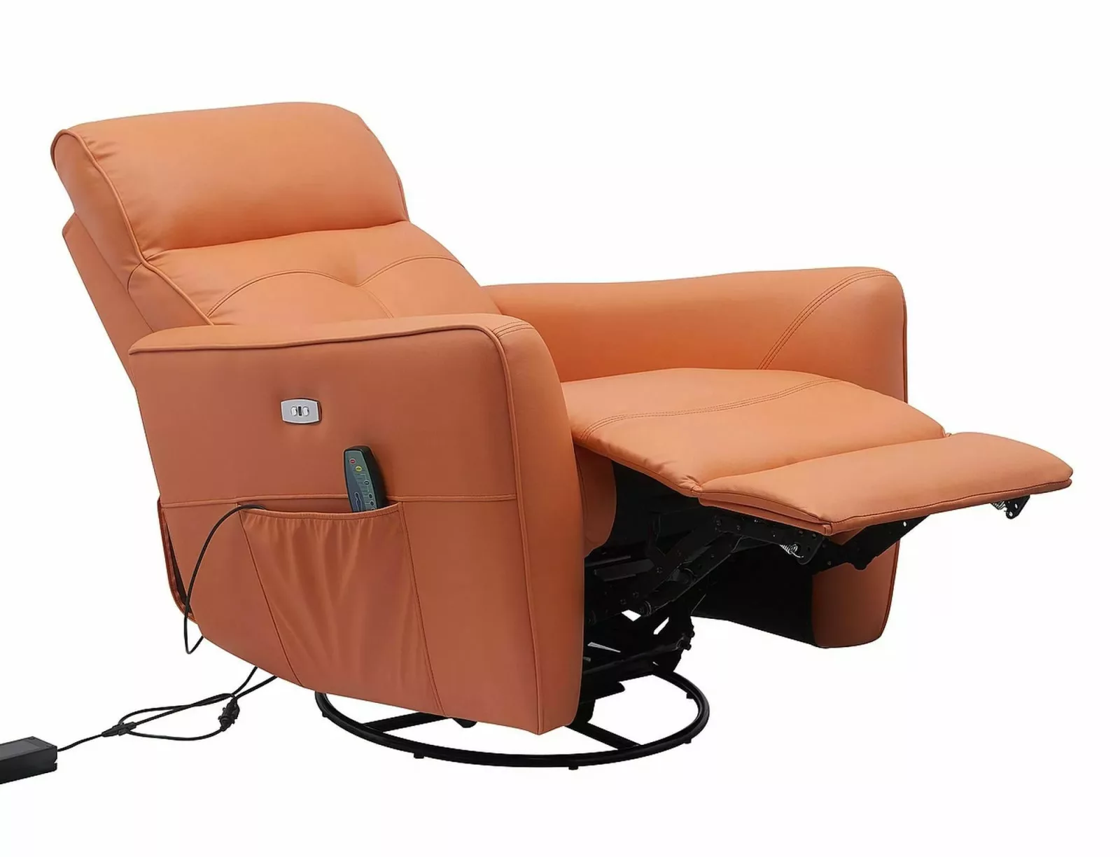 Luxus és kényelem találkozása ebben az elektromosan állítható masszázsfotelben. A 360°-ban forgatható és hintázó funkcióval rendelkező narancssárga műbőr fotel USB porttal és többfunkciós vezérlőpanellel van felszerelve a tökéletes relaxációs élményért.