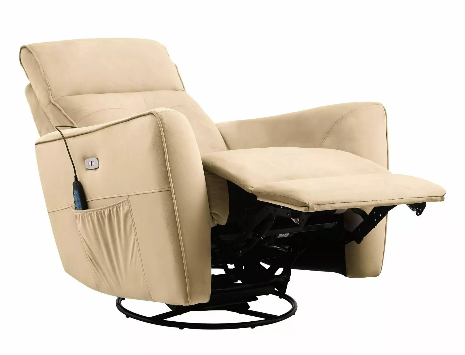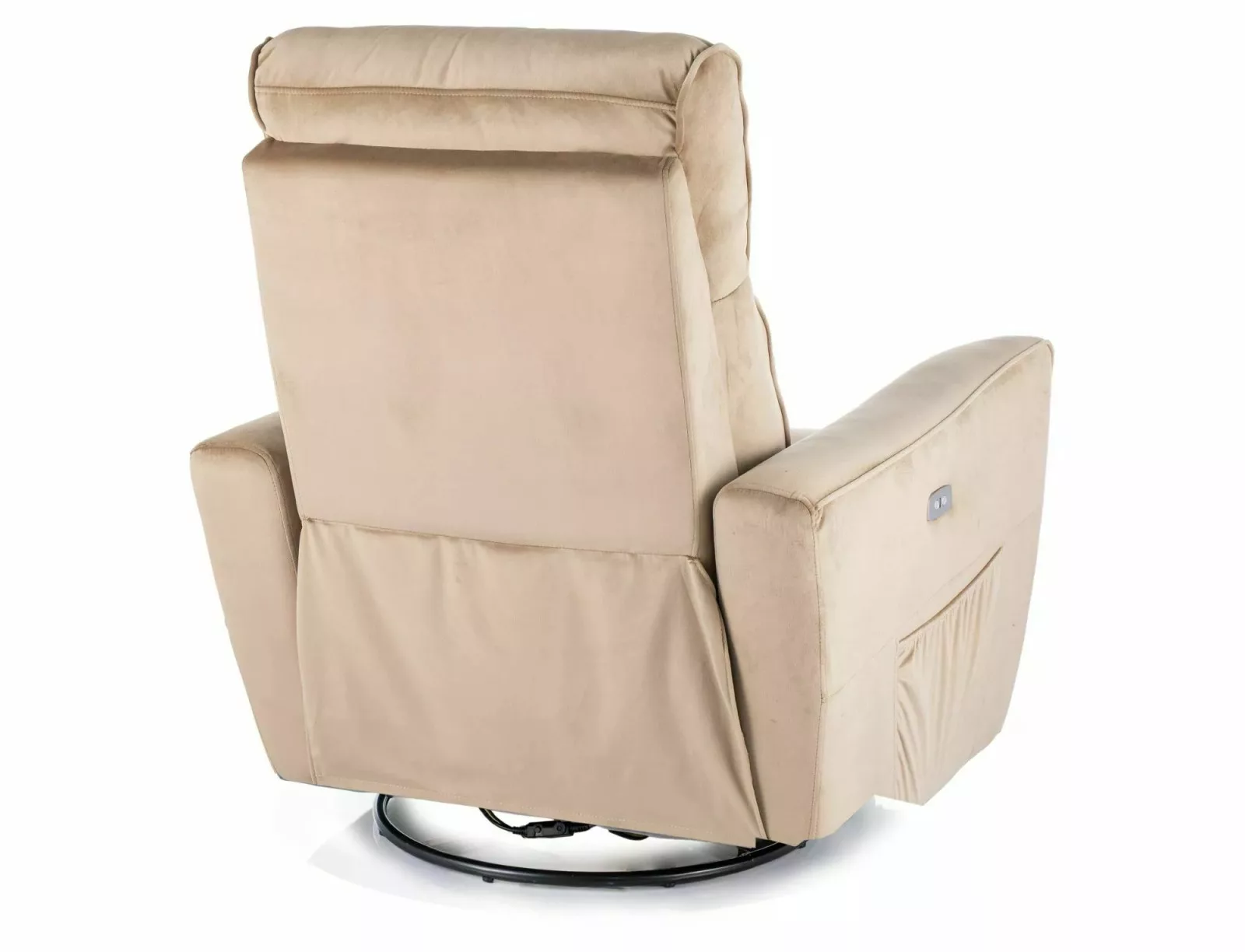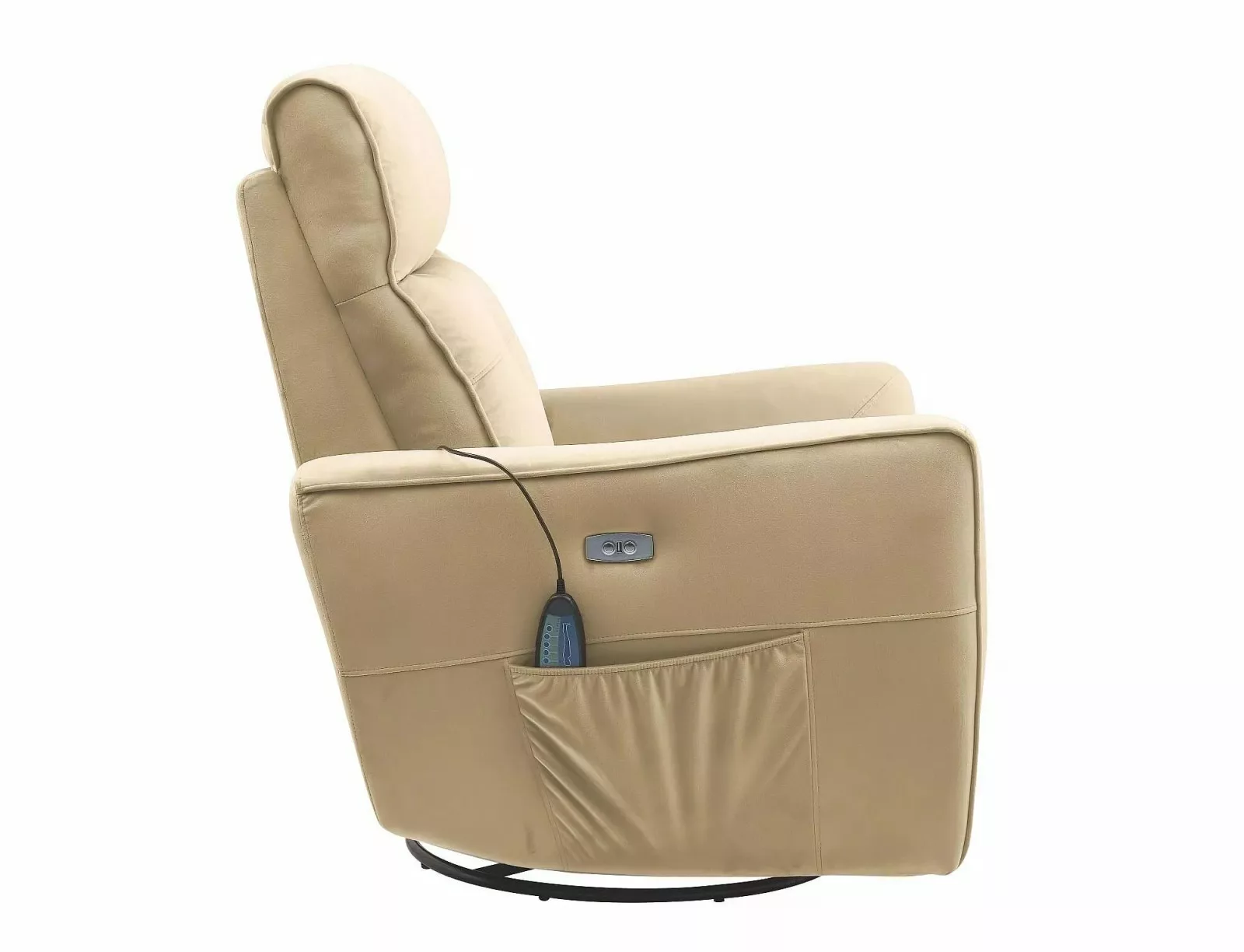 Luxus és kényelem találkozása ebben az elektromosan állítható relax fotelben. A bézs bársony kárpitozású fotel masszázs funkcióval, USB porttal és 360 fokos forgási lehetőséggel rendelkezik, tökéletes választás a mindennapi pihenéshez.