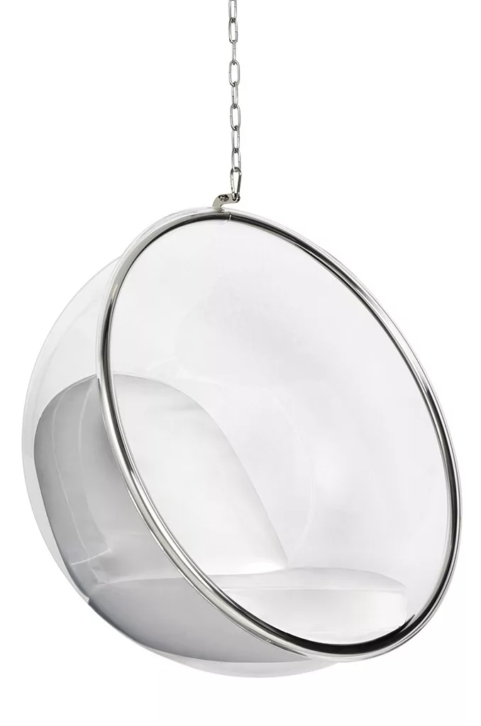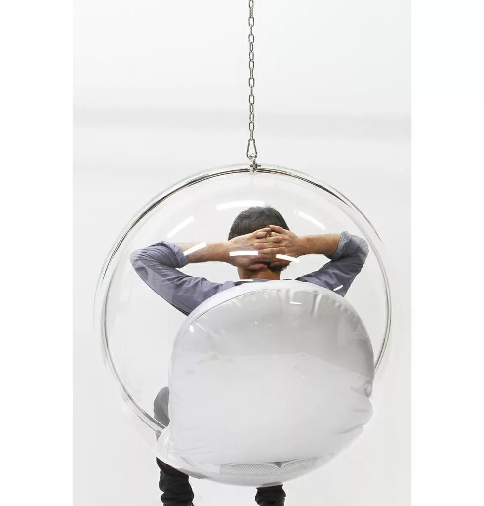 A Bubble függőfotel egy innovatív és szemet gyönyörködtető bútor, amely tökéletesen ötvözi a modern designt és a kényelmet. Az átlátszó akril test és a fehér műbőr párnák harmonikus kombinációja egyedi megjelenést kölcsönöz a fotelnek. A 182 cm hosszú lánccal a mennyezetre rögzíthető, így tökéletes lebegő hatást kelt a térben.