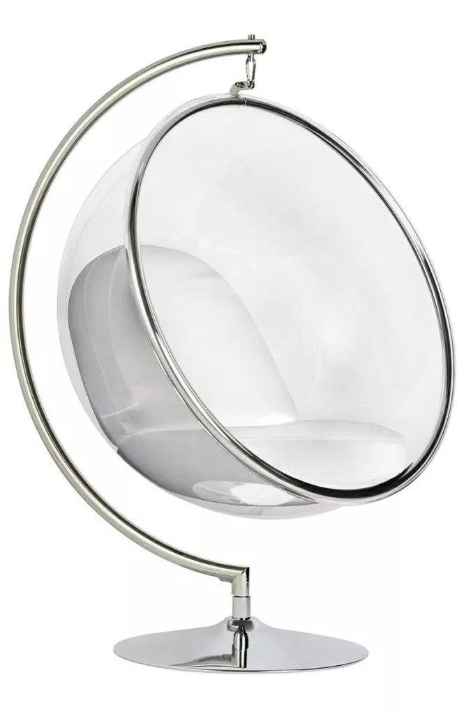 A modern és stílusos Bubble Stand függőfotel tökéletes választás a pihenéshez és kikapcsolódáshoz. Az akril test, krómozott állvány és fehér műbőr párna kombinációja elegáns megjelenést kölcsönöz ennek az ikonikus bútordarabnak.