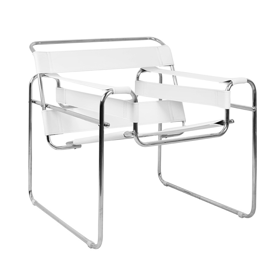 King Home IVAN Modern Műbőr Fotel Fehér Króm