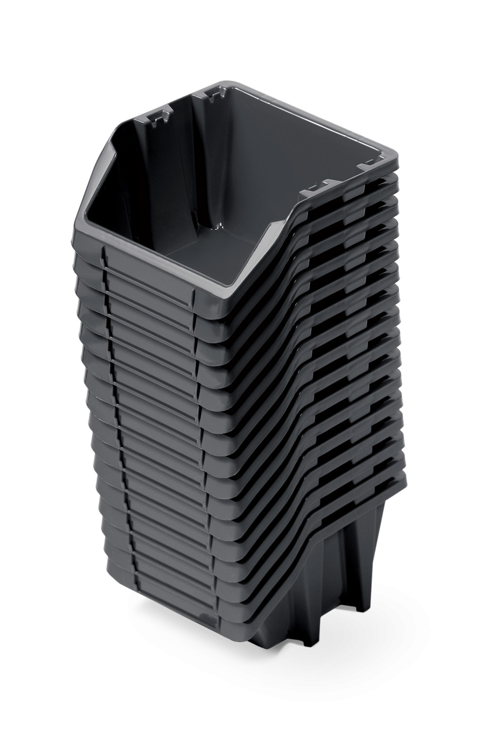 16 darabos kompakt műhelytároló készlet, amely ideális kisebb alkatrészek és szerszámok rendszerezett tárolására. Strapabíró polimer anyagból készült, összekapcsolható és falra szerelhető kivitelben.