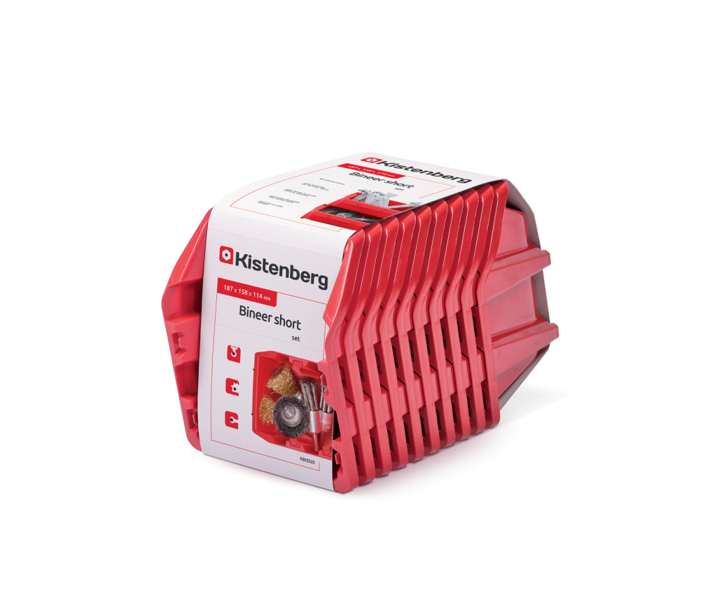 A Kistenberg Bineer Short tárolódoboz készlet forradalmasítja a műhelyi tárolást. A 10 darabos készlet tartós polimerből készült, egymásra építhető tárolódobozokból áll, amelyek optimális megoldást kínálnak szerszámok, csavarok és egyéb műhelyi kellékek tárolására.