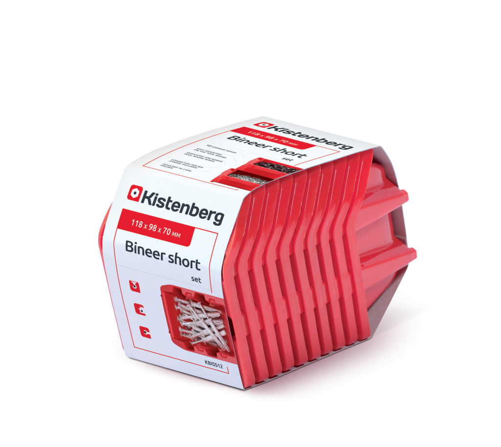A Kistenberg Bineer Short műhelyfiók készlet forradalmasítja a műhelyek tárolási rendszerét. A készlet 10 darab kompakt tárolófiókot és 32 rögzítő elemet tartalmaz, amelyek segítségével rugalmasan alakítható ki a kívánt tárolórendszer. A fiókok egymásra építhetők és összekapcsolhatók, így maximális helykihasználást biztosítanak.