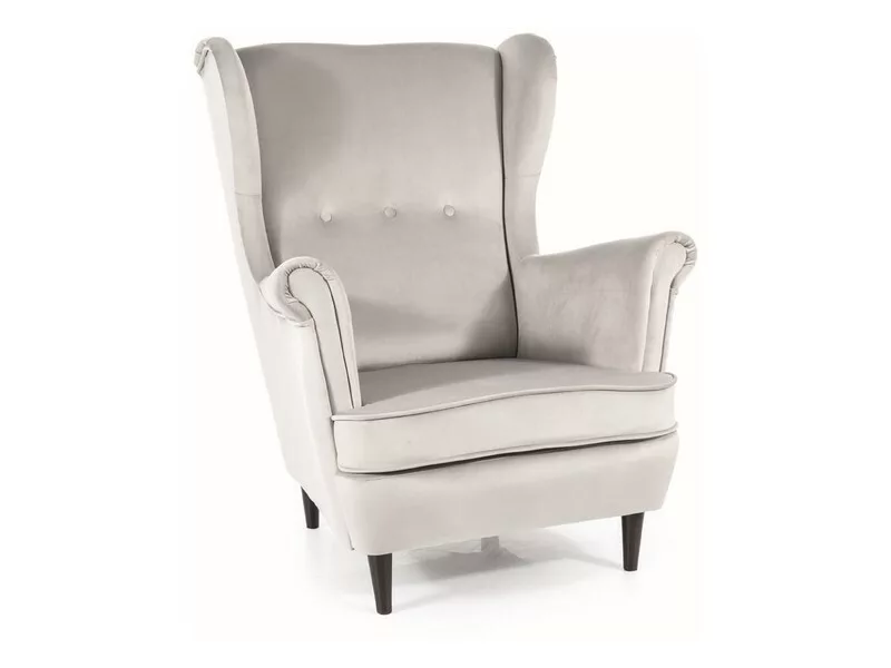 A Lord Velvet füles fotel a klasszikus design és modern kényelem tökéletes ötvözete. A magas háttámlás, szárnyas kialakítás és a puha, világosszürke bársonykárpit luxus megjelenést kölcsönöz a darabnak. A wenge színű fa lábak stabil alapot biztosítanak, míg a szék ergonomikus kialakítása tökéletes támasztékot nyújt.
