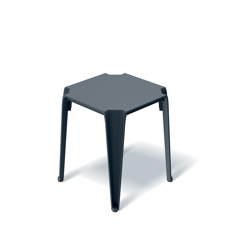 Modern vonalvezetésű, kompakt méretű kisasztal bazalt színben, amely tökéletes kiegészítője lehet mind beltéri, mind kültéri tereknek.