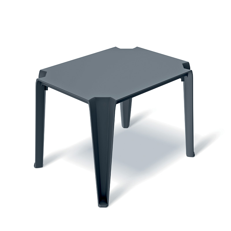 Modern vonalvezetésű, bazalt színű kisasztal, amely tökéletes kiegészítője mind beltéri, mind kültéri tereknek.