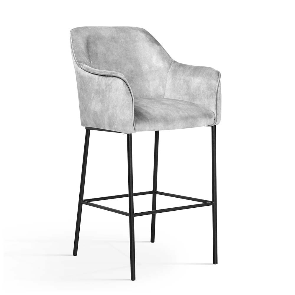 Malaga L Kárpitozott Bárszék Szürke Bársony Fekete Lábakkal 70cm