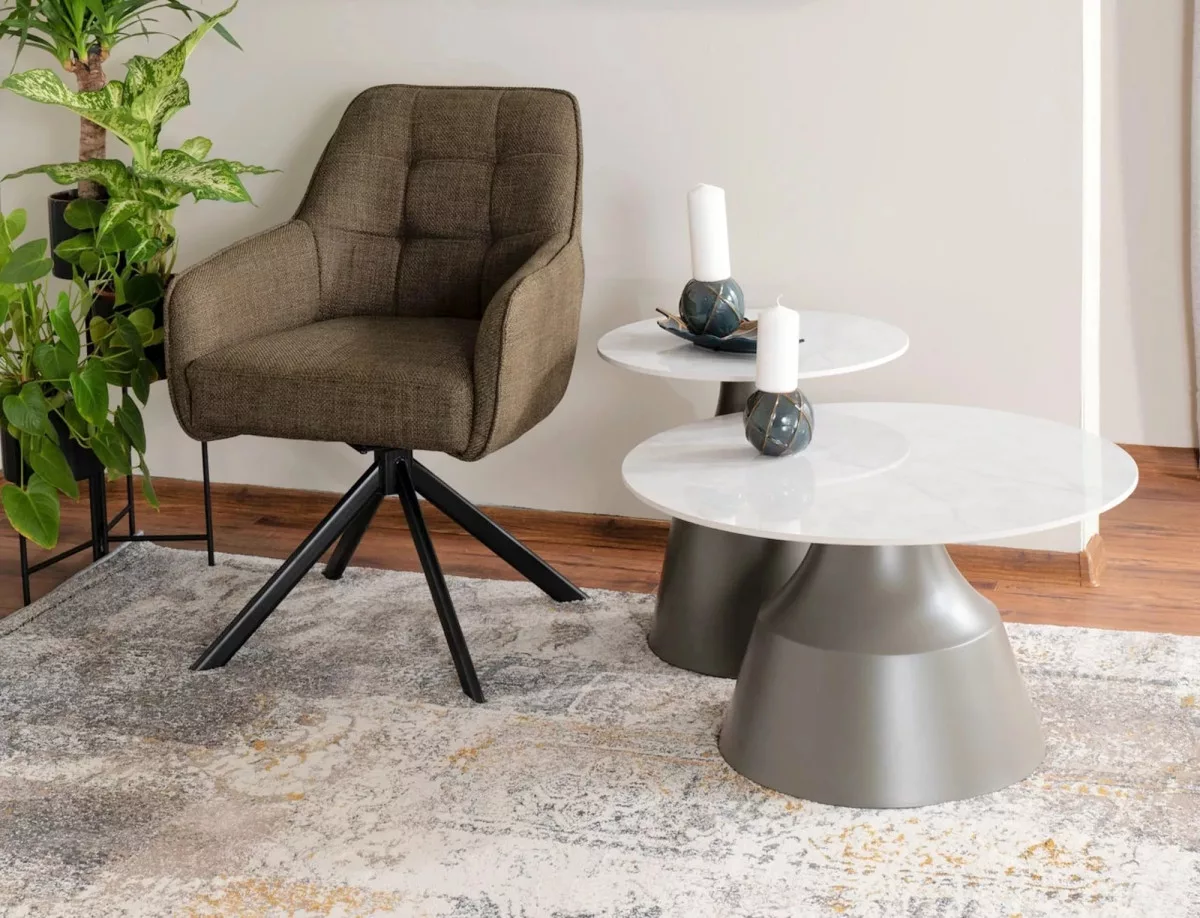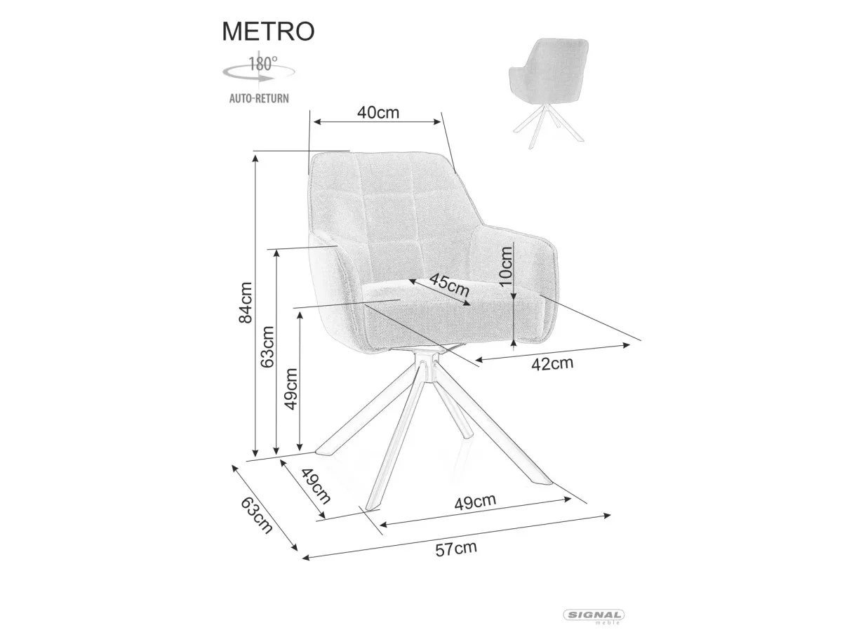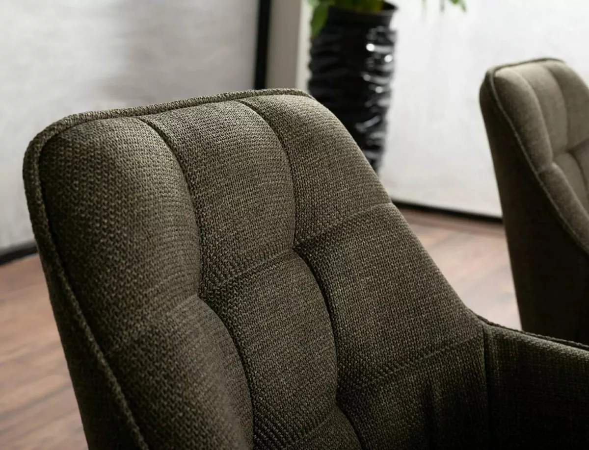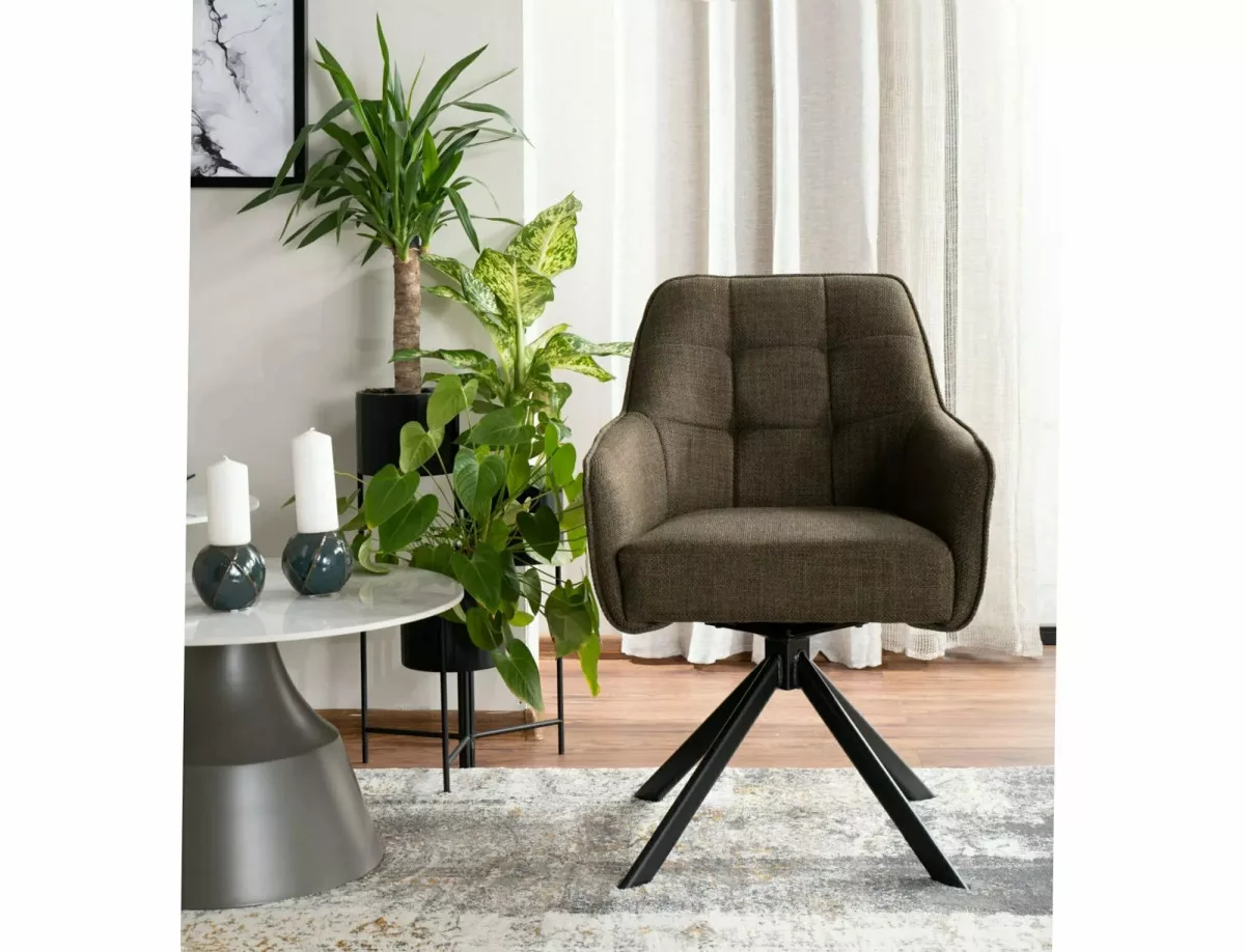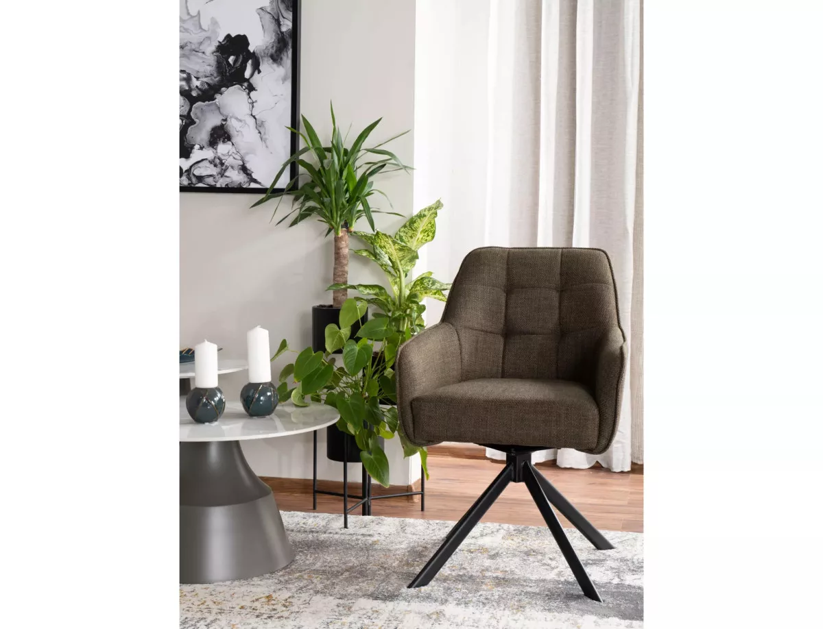 A Metro Bjorn forgószék egy modern és elegáns bútordarab, amely tökéletesen ötvözi a funkcionalitást és a stílust. A szék olívazöld Bjorn szövettel van kárpitozva, amely kellemes tapintású és tartós. A matt fekete fém váz stabil alapot biztosít, míg a 180 fokos forgási képesség és az auto-return funkció praktikus használatot tesz lehetővé.