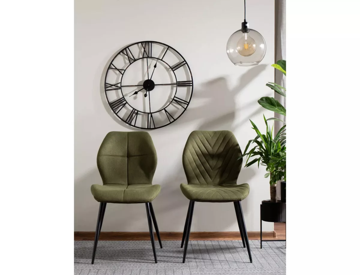 A Mike Nea étkezőszék a modern design és a kényelem tökéletes ötvözete. A szék elegáns V-alakú varrással díszített háttámlával és puha, zöld Nea szövettel kárpitozott ülőfelülettel rendelkezik. A matt fekete fém váz karcsú, stabil alapot biztosít, miközben időtlen megjelenést kölcsönöz a széknek. Az ergonomikus kialakítás és a minőségi anyagok használata garantálja a hosszú élettartamot.