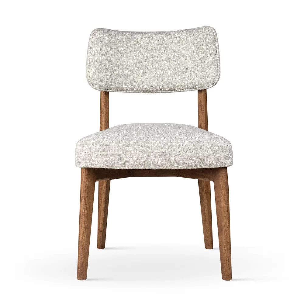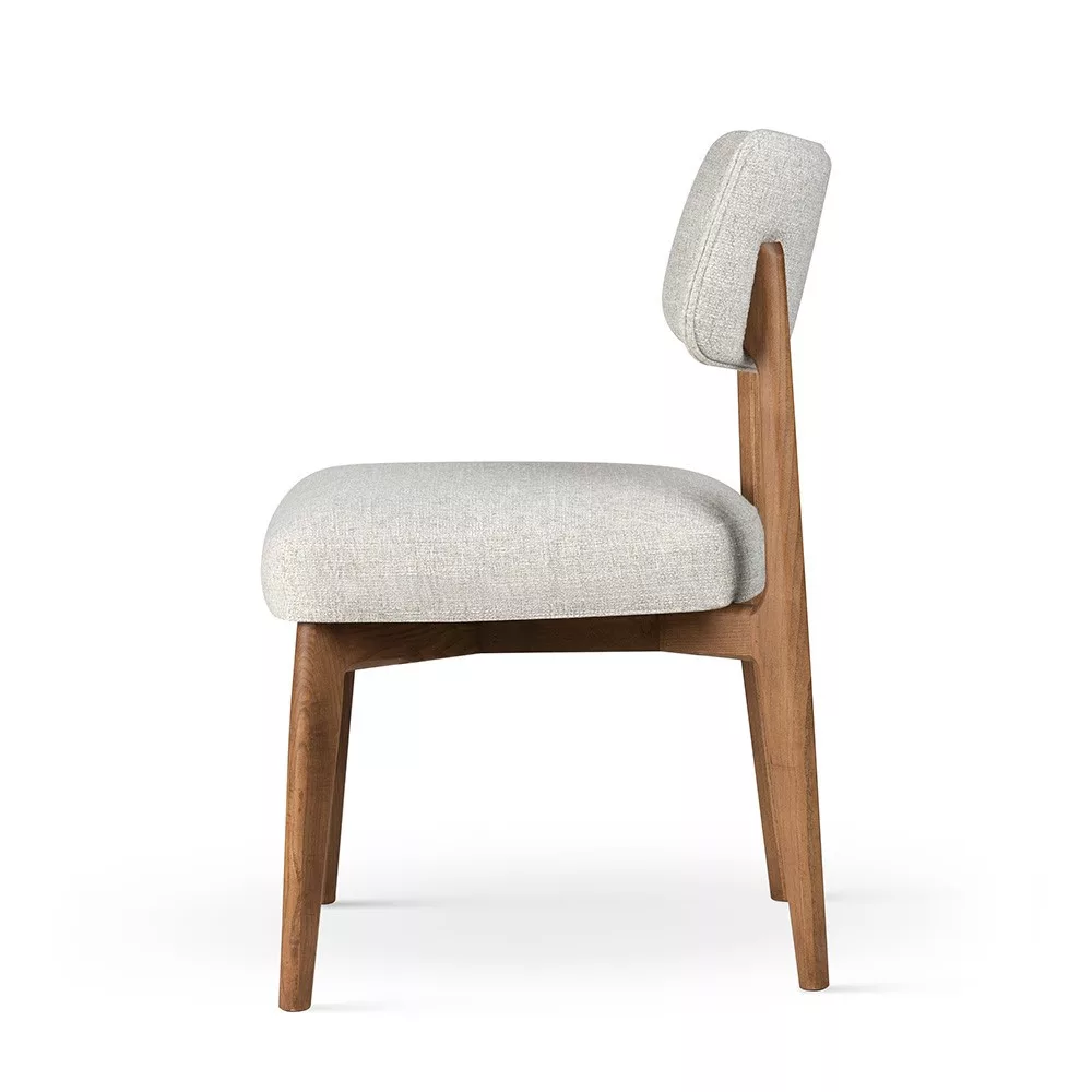 A Minotti kárpitozott szék a modern dizájn és a funkcionalitás tökéletes ötvözete. A szék letisztult vonalvezetése és a gondosan megválasztott anyagok kombinációja időtlen eleganciát sugároz. A bézs szövetkárpit puha, kellemes tapintású és tartós, míg a dióbarna tölgyfa lábak stabil alapot biztosítanak és melegséget kölcsönöznek a dizájnnak.