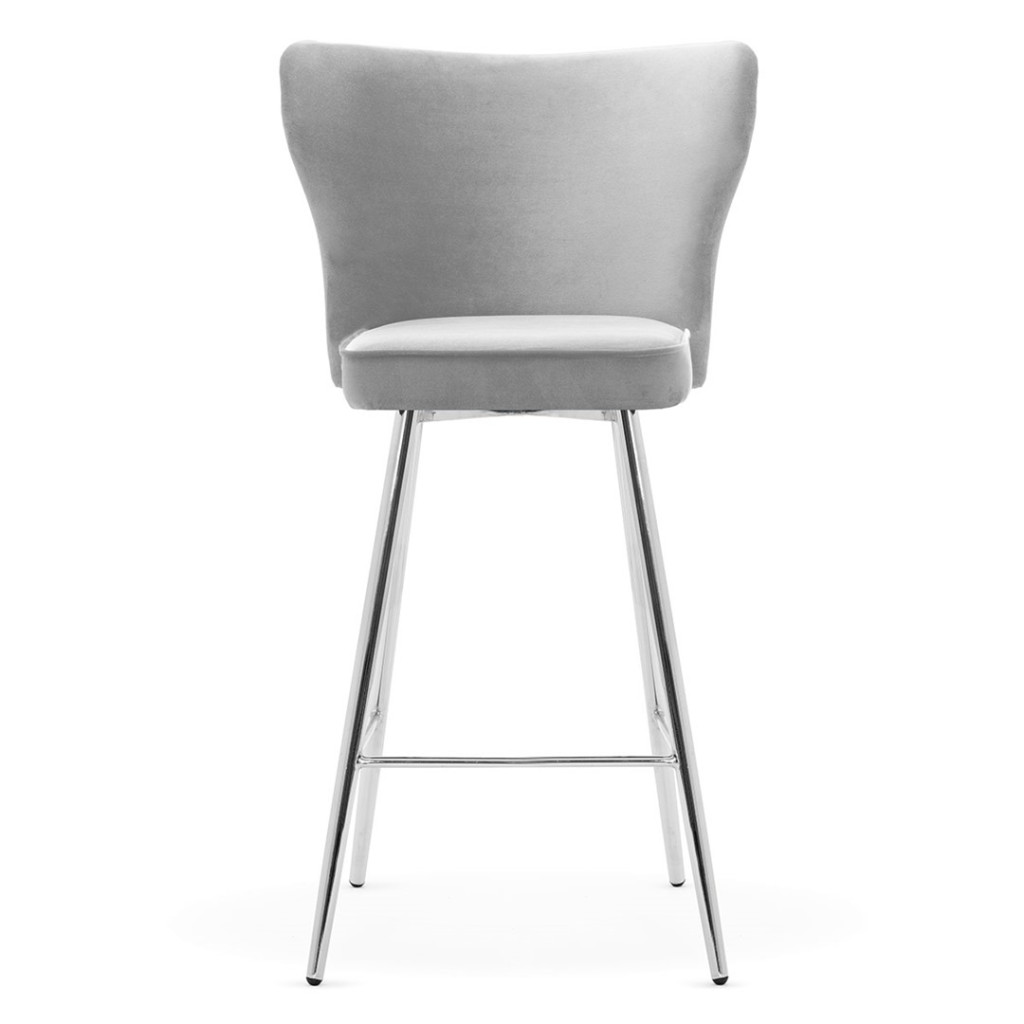 A MODENA bárszék kollekció legújabb darabja ez a lenyűgöző, 70 cm magas ülőalkalmatosság, amely ötvözi a klasszikus és modern design elemeket. A szék háttámláját elegáns steppelt mintázat díszíti, amely királyi megjelenést kölcsönöz a darabnak. A puha, szürke bársony kárpitozás és az arany színű fém lábak tökéletes összhangot alkotnak.