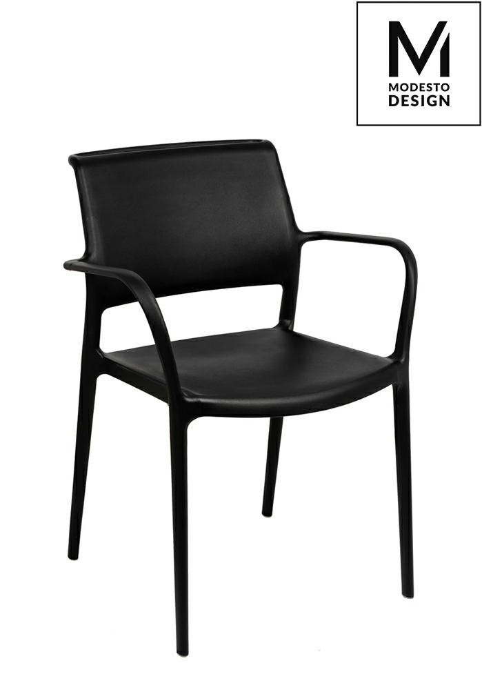 A Modesto Design Petra szék kiváló minőségű matt fekete polipropilénből készült, modern és ergonomikus kialakítással. Tökéletes választás konyhába, étkezőbe vagy vendéglátóhelyekre, kényelmes kartámaszokkal a maximális komfortért.