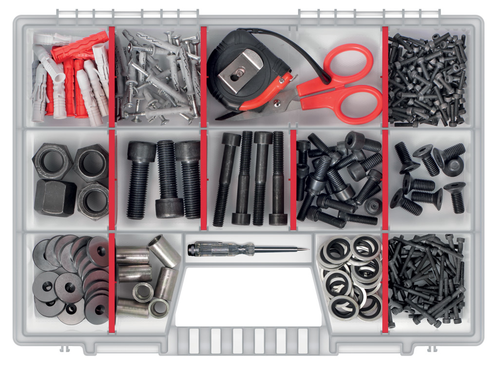 A Nort 40 szerszámrendező tároló ideális megoldást kínál a műhelyben vagy otthon található kisebb szerszámok, alkatrészek és tartozékok rendszerezett tárolására. Az átlátszó polipropilén konstrukció azonnal láthatóvá teszi a tárolt eszközöket, míg a strapabíró zárak biztonságosan tartják a fedelet.