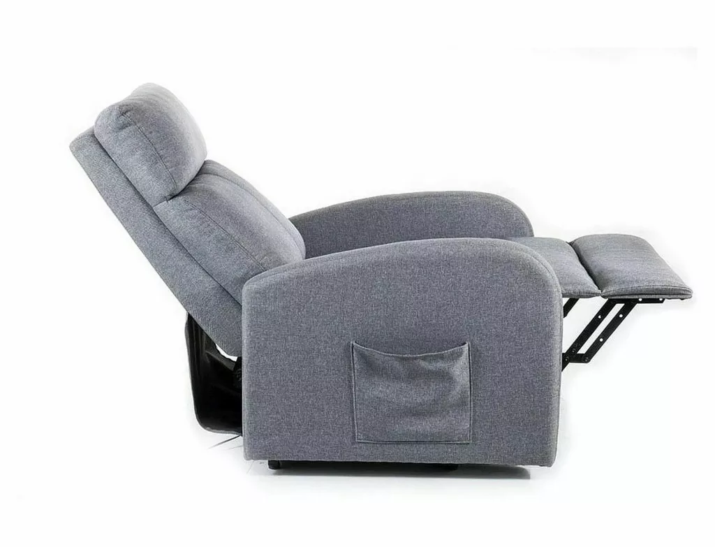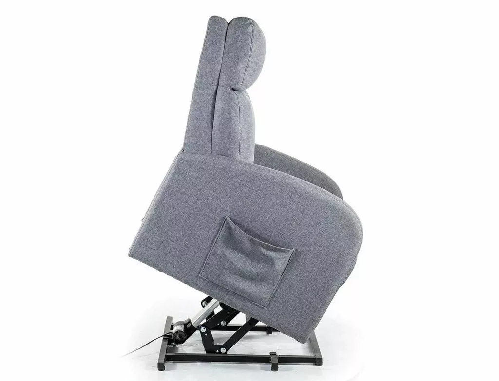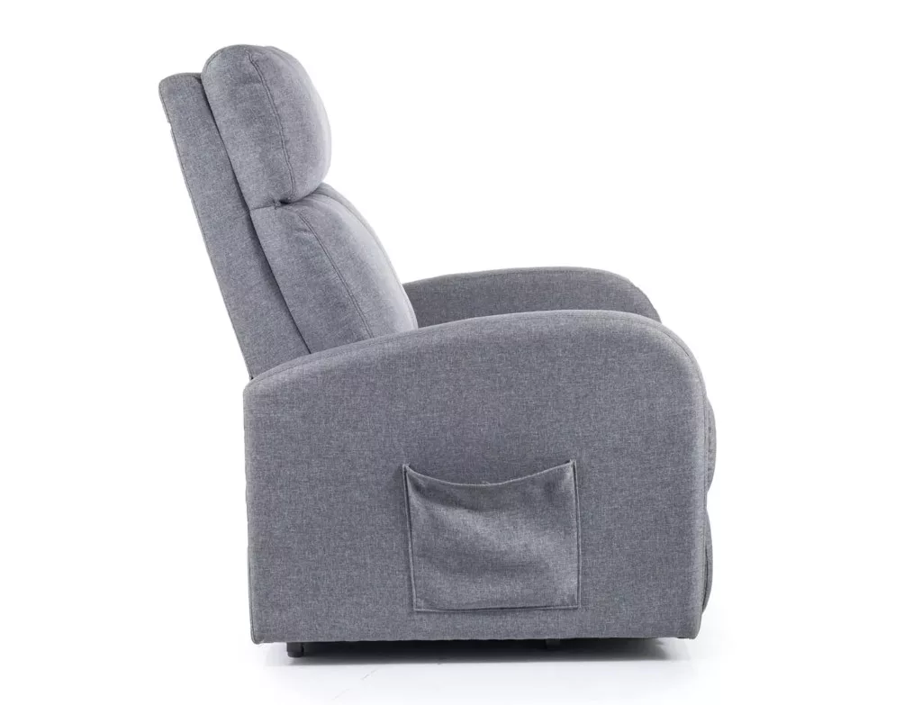 Modern elektromos relax fotel kényelmes kialakítással, vezetékes távirányítóval és praktikus oldalsó tárolózsebekkel. A szürke szövetkárpit és a fekete fém váz tökéletes kombinációja stílusos megjelenést kölcsönöz.