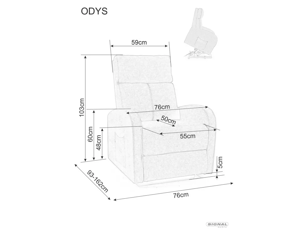 Az Odys elektromos relax fotel a modern kényelem és funkcionalitás tökéletes ötvözete. A szürke szövetkárpitozású fotel elektromos vezérléssel állítható különböző pozíciókba, lehetővé téve a tökéletes pihenést. A karfába épített praktikus tárolózseb és a vezetékes távirányító könnyű kezelhetőséget biztosít. A fotel 93 cm hosszú, 76 cm széles és 103 cm magas, ideális méretekkel rendelkezik egy átlagos nappaliba.