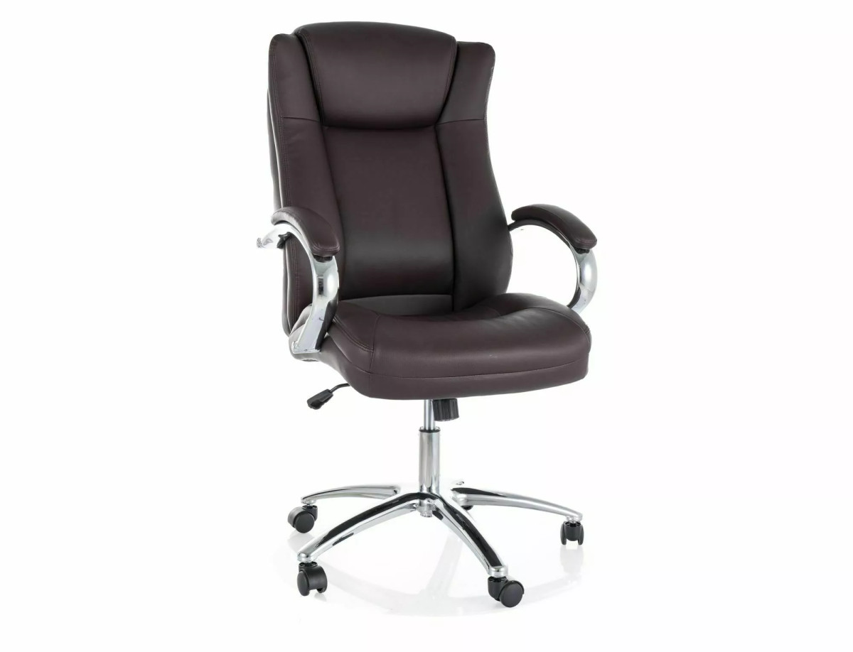 Elegáns és kényelmes forgószék barna műbőr kárpitozással és króm vázzal. TILT mechanizmussal felszerelt, állítható magasságú ülőfelülettel a maximális munkahelyi kényelem érdekében.