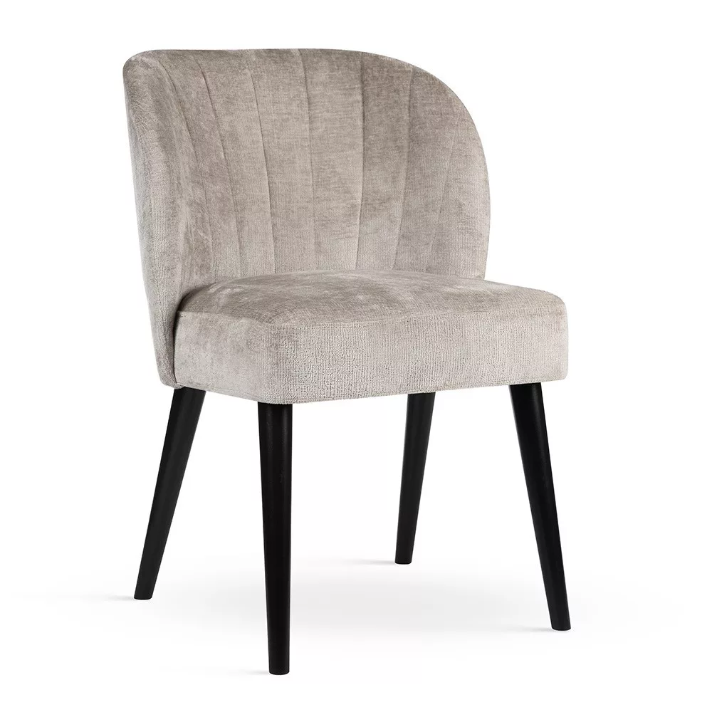 A Shelly Supreme szék a modern otthonok tökéletes kiegészítője. A szék különleges kialakítása ötvözi a klasszikus és modern elemeket, míg a puha, szürke bársony kárpitozás és a bordázott háttámla biztosítja a maximális kényelmet. A fekete fa lábak stabil alapot biztosítanak és elegáns kontrasztot képeznek a világos kárpitozással.