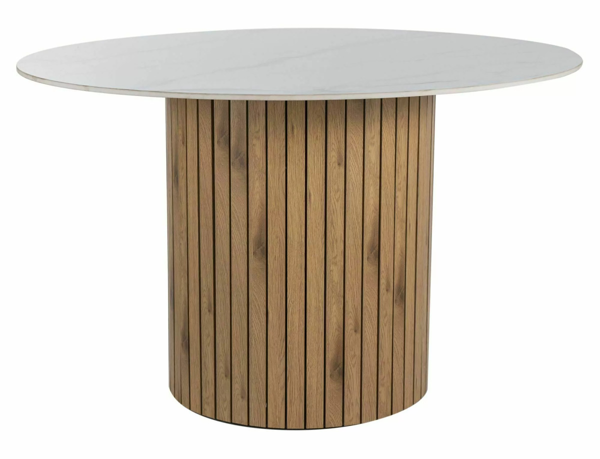 Socrates Kerámia Kerek Étkezőasztal Fehér Fényes Lappal és Artisan Tölgy Lábazattal