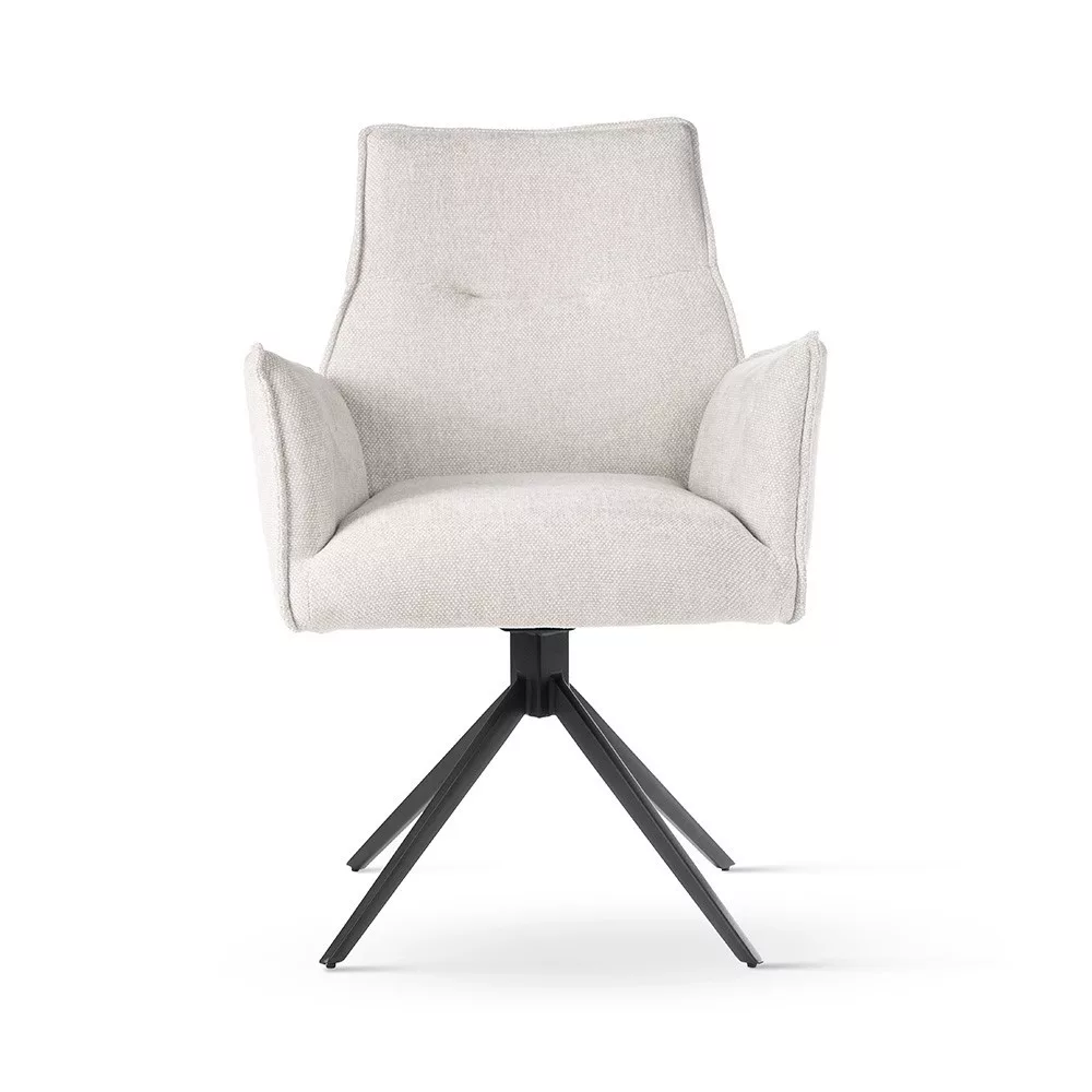 A SOPHIA forgószék a modern design és a praktikus funkcionalitás tökéletes ötvözete. A szék különleges kialakítása ötvözi a letisztult vonalvezetést és a kényelmes használatot. A magas támlával és karfákkal ellátott ülőfelület maximális komfortérzetet biztosít, míg a stabil, fekete fém lábszerkezet modern megjelenést kölcsönöz a széknek.