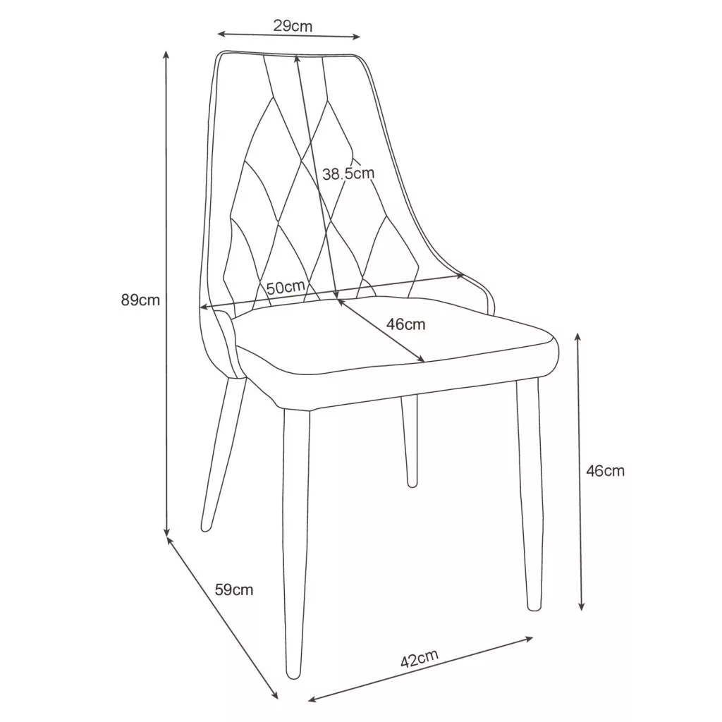 Az AKORD SJ.054 étkezőszék kollekció a modern otthonok elegáns kiegészítője. A fekete bársony kárpitozás és a steppelt háttámla királyi megjelenést kölcsönöz, míg a karcsú fém lábak modern kontrasztot teremtenek. A szék tervezése során különös figyelmet fordítottak az ergonómiára és a tartósságra.