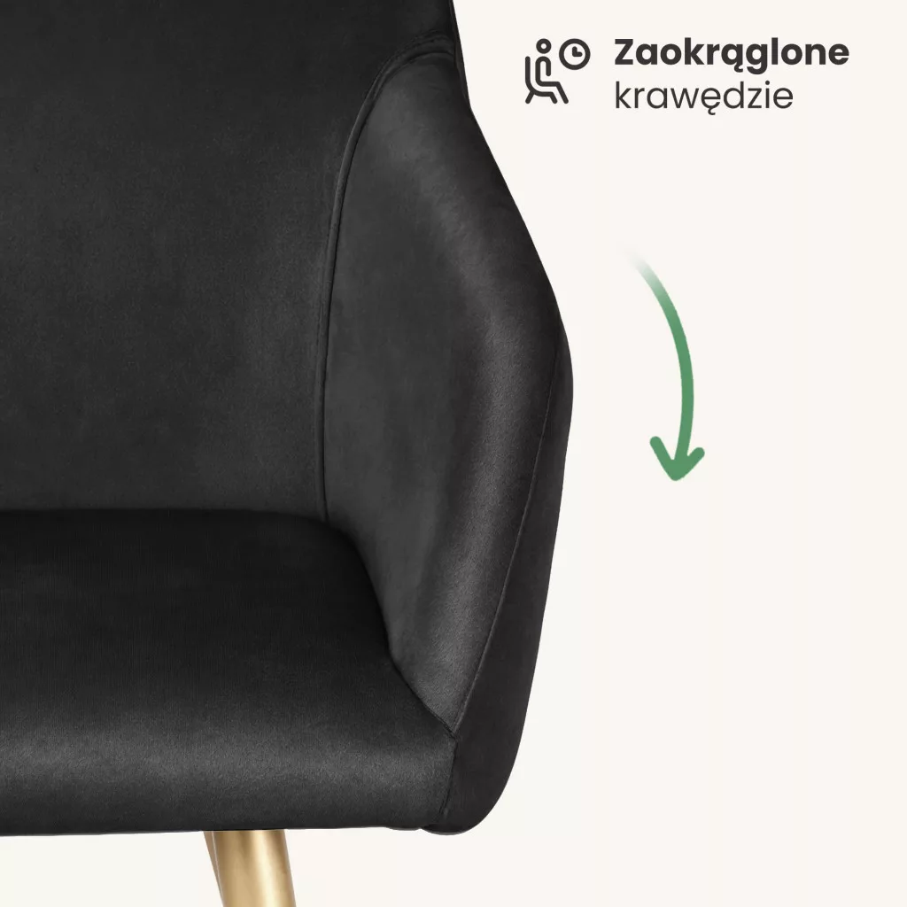 • Arany színű acél lábak: A stabil fém konstrukció 120 kg teherbírást biztosít, miközben elegáns kontrasztot teremt a fekete ülőfelülettel