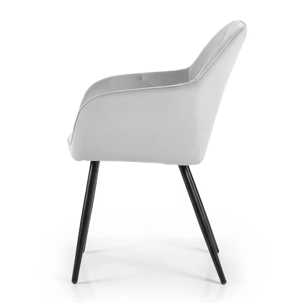 Elegáns, welur kárpitozott DIAMANTE szék dekoratív steppelt mintával és fekete fém lábakkal. A nagy sűrűségű habszivacs töltet kiváló ülési kényelmet biztosít, miközben a modern dizájn tökéletesen illeszkedik kortárs és klasszikus berendezésekhez egyaránt.