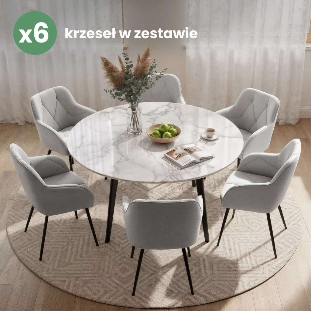 Ez a 6 db-os szék szett univerzálisan alkalmazható különböző berendezési stílusokban – legyen szó modern, modern organic vagy modern classic enteriőrökről. A szürke színű welur kárpit semleges, mégis elegáns, könnyen kombinálható más bútorokkal és színekkel. A DIAMANTE székek nemcsak az étkezőben, hanem a nappaliban vagy akár irodai térben is kiválóan mutatnak, ahol a funkcionalitás és az esztétikum egyaránt fontos szempont.