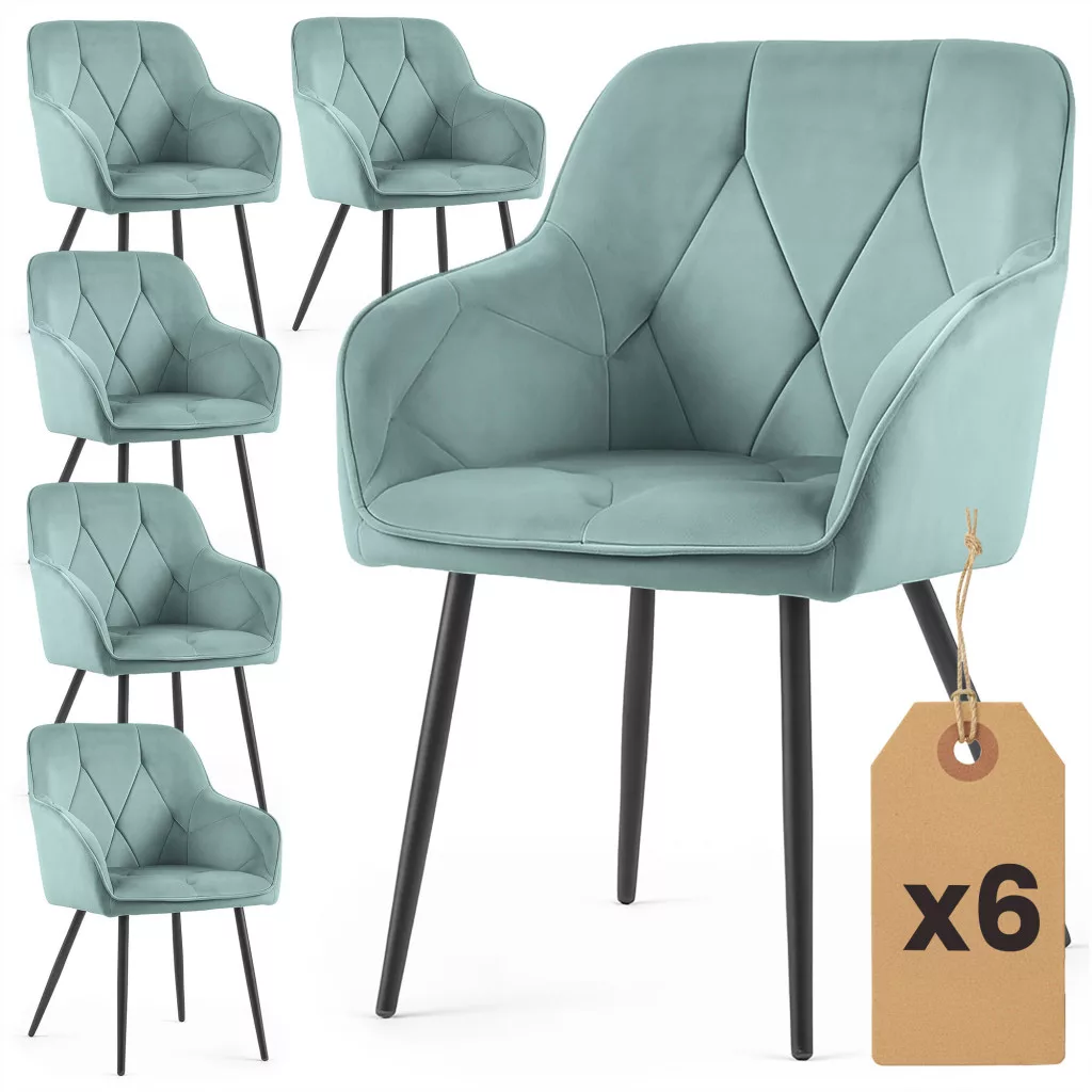 AKORD DIAMANTE kárpitozott szék welur türkiz fekete lábakkal 6 db-os szett