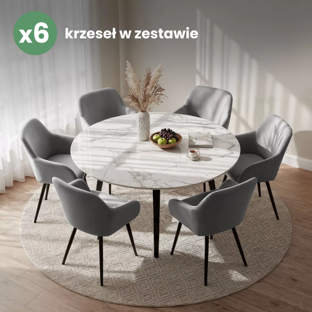 A stabil fekete fém lábak modern megjelenést kölcsönöznek a széknek, miközben garantálják a tartósságot és a biztonságot. A 120 kg-os teherbírás és a gondosan megválasztott anyagok hosszú élettartamot ígérnek. Ez a 6 darabos szett tökéletes választás modern, modern classic vagy glamour stílusú étkező- és nappali terek berendezéséhez, ahol az elegancia és a funkcionalitás egyaránt fontos szempont.