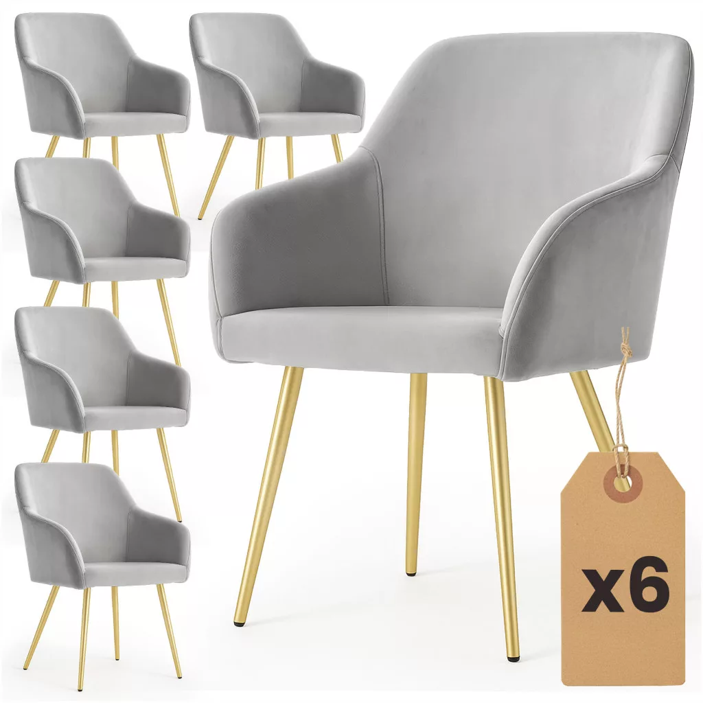AKORD Furniture Factory ESTELLE étkezőszék welúr szürke arany lábakkal 6 db-os szett