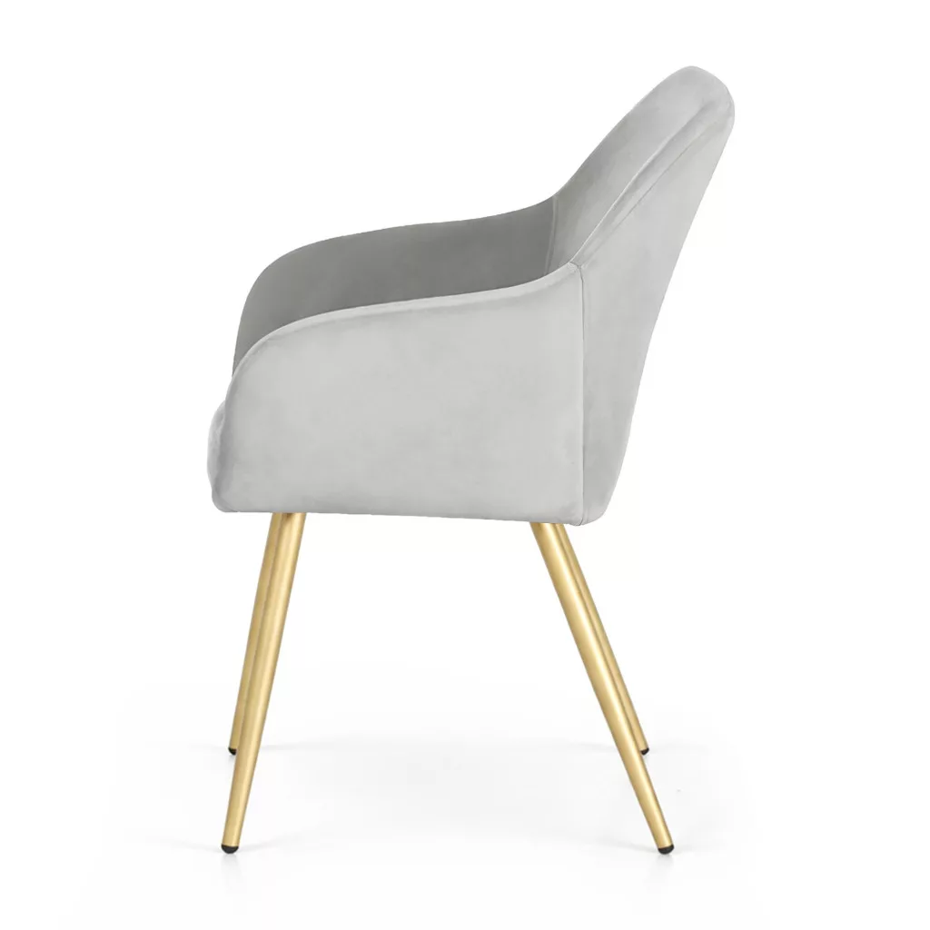 Az ESTELLE welúr étkezőszék tökéletes választás modern és glamour stílusú otthonokba. A puha, szürke welúr kárpit és az elegáns arany színű fém lábak harmonikus kombinációja kényelmet és kifinomult megjelenést biztosít.
