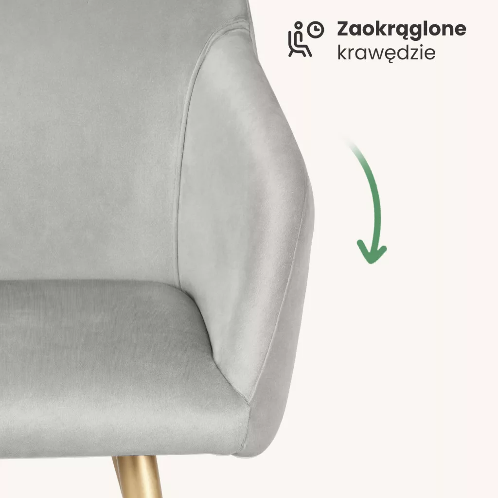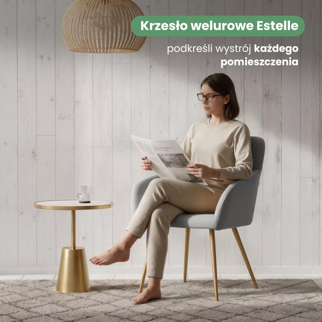 Az ESTELLE étkezőszék a minimalista design és a praktikus kényelem tökéletes ötvözete. A puha tapintású, prémium minőségű welúr kárpit nemcsak kellemes ülési élményt nyújt, hanem vizuálisan is feldobja az étkezőt vagy nappalit. A szürke színárnyalat univerzális választás, amely könnyedén illeszkedik különböző berendezési stílusokhoz, míg az arany színű fém lábak glamour eleganciát kölcsönöznek a széknek.