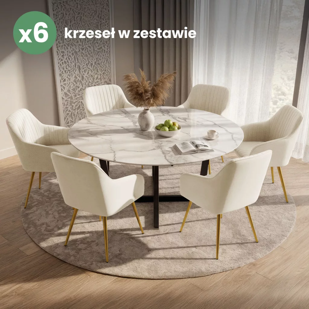 AKORD Florence Tapicerowane Krzesło Welurowe Kremowe Złote Nogi 6 db