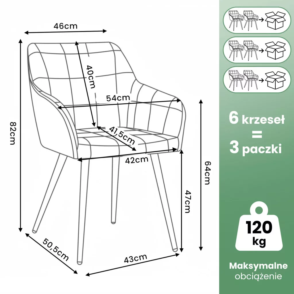 A LUXANO kárpitozott étkezőszék lenyűgöző megjelenésével és kiváló minőségével azonnal feldobja étkezője vagy nappali hangulatát. A puha welúr kárpit négyzetes steppelt mintával díszítve presztízst és luxust sugároz, miközben a nagy sűrűségű habszivacs töltet hosszú órákig tartó kényelmet biztosít. A fekete fém lábak stabil alapot nyújtanak és modern kontrasztot teremtenek a bézs színű kárpittal. Ez a 6 darabos szett tökéletes választás azok számára, akik szeretnék étkezőjüket vagy nappalijukat elegáns, mégis praktikus bútorokkal berendezni.