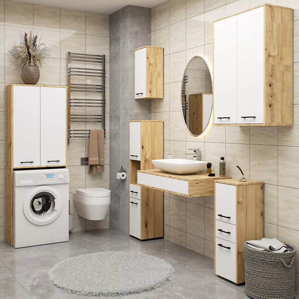 AKORD FIN W30 Fali Fürdőszobai Szekrény Artisan Tölgy-Fehér