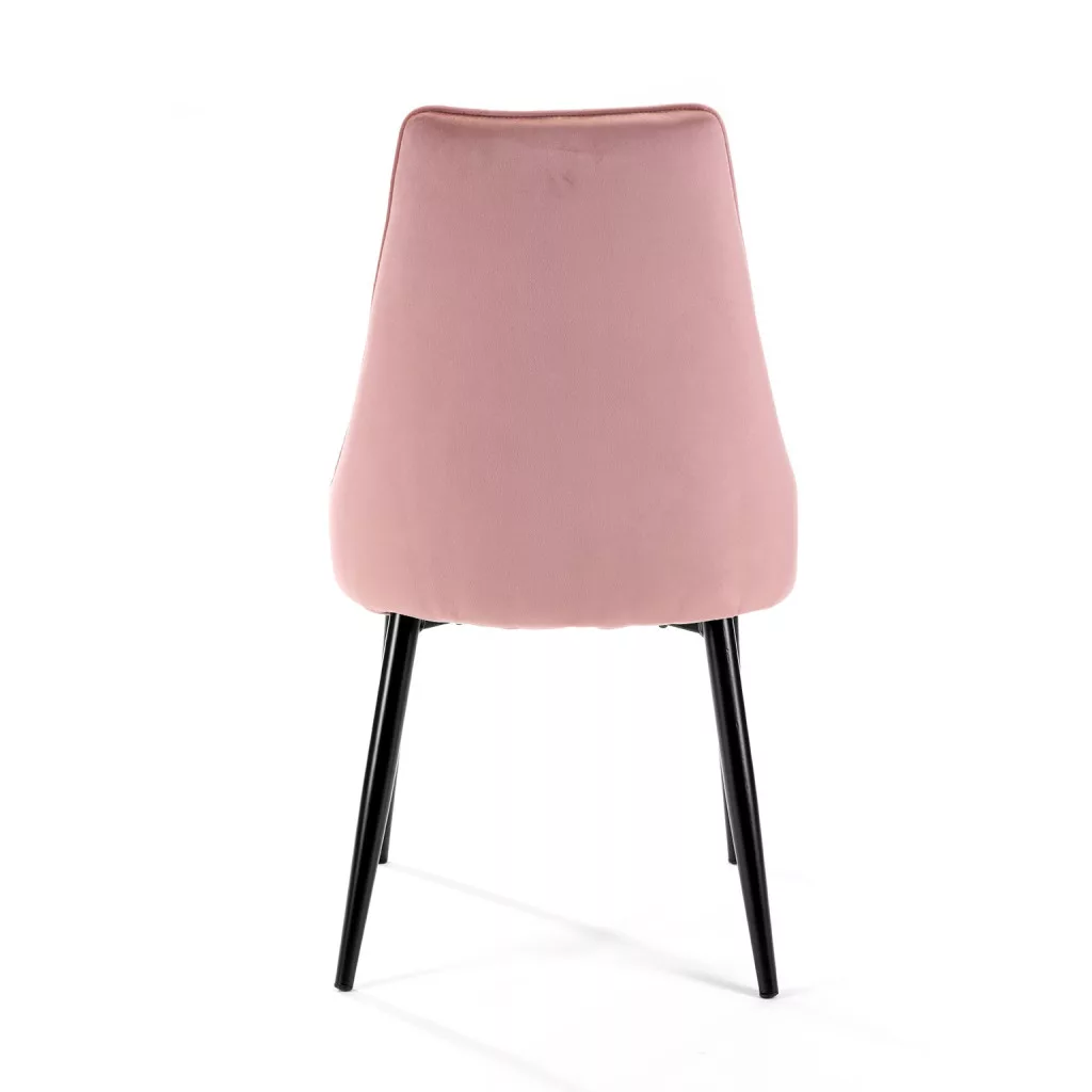 Az AKORD SJ.054 étkezőszék a modern elegancia és kényelem tökéletes ötvözete. A rózsaszín bársony kárpitozás és a steppelt háttámla különleges megjelenést kölcsönöz a széknek. A fekete fémlábak stabil alapot biztosítanak, míg a kereszt alakú talpszerkezet modern megjelenést kölcsönöz. A szék ergonomikus kialakítása és puha tapintása hosszan tartó kényelmet biztosít.
