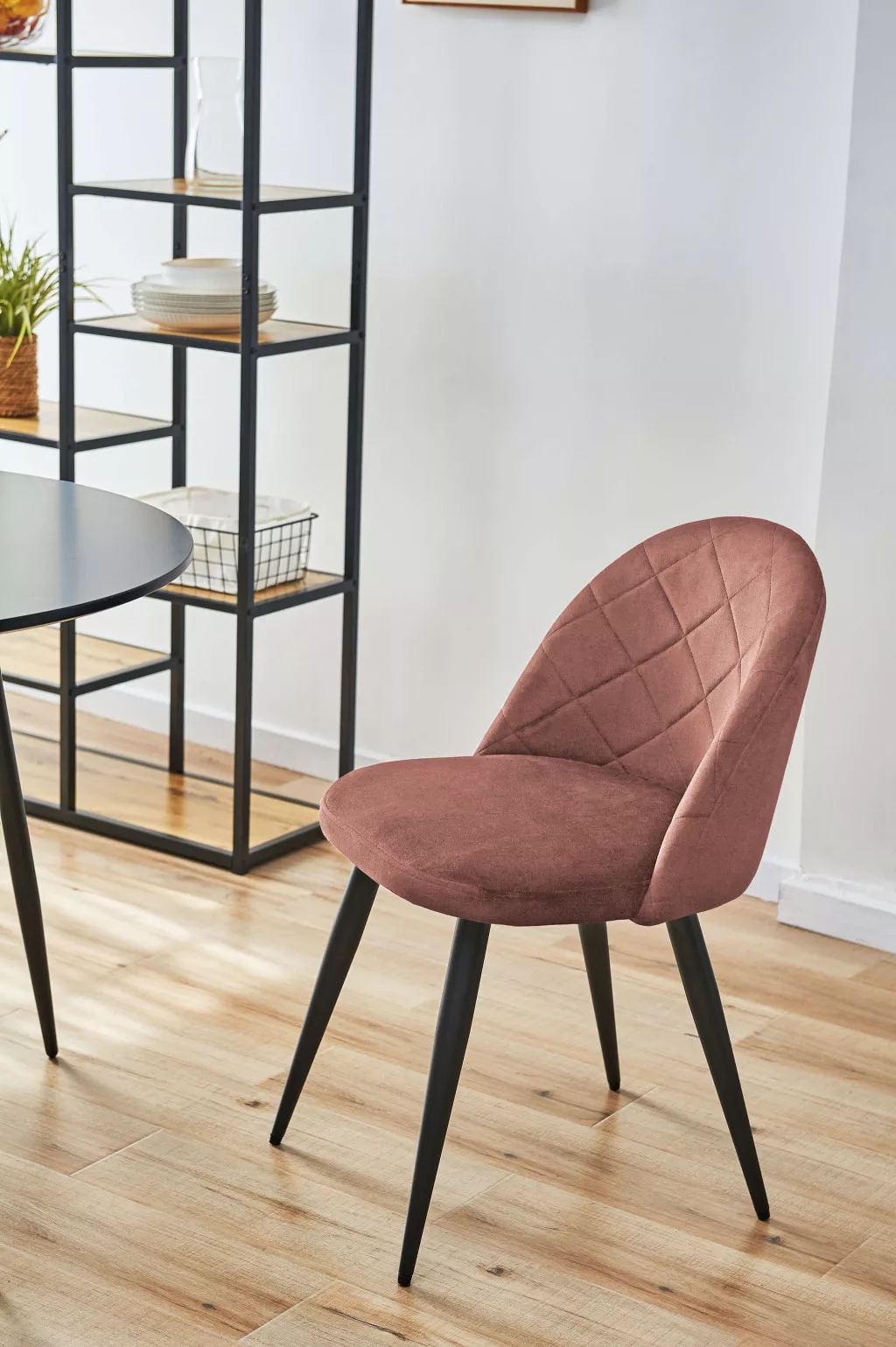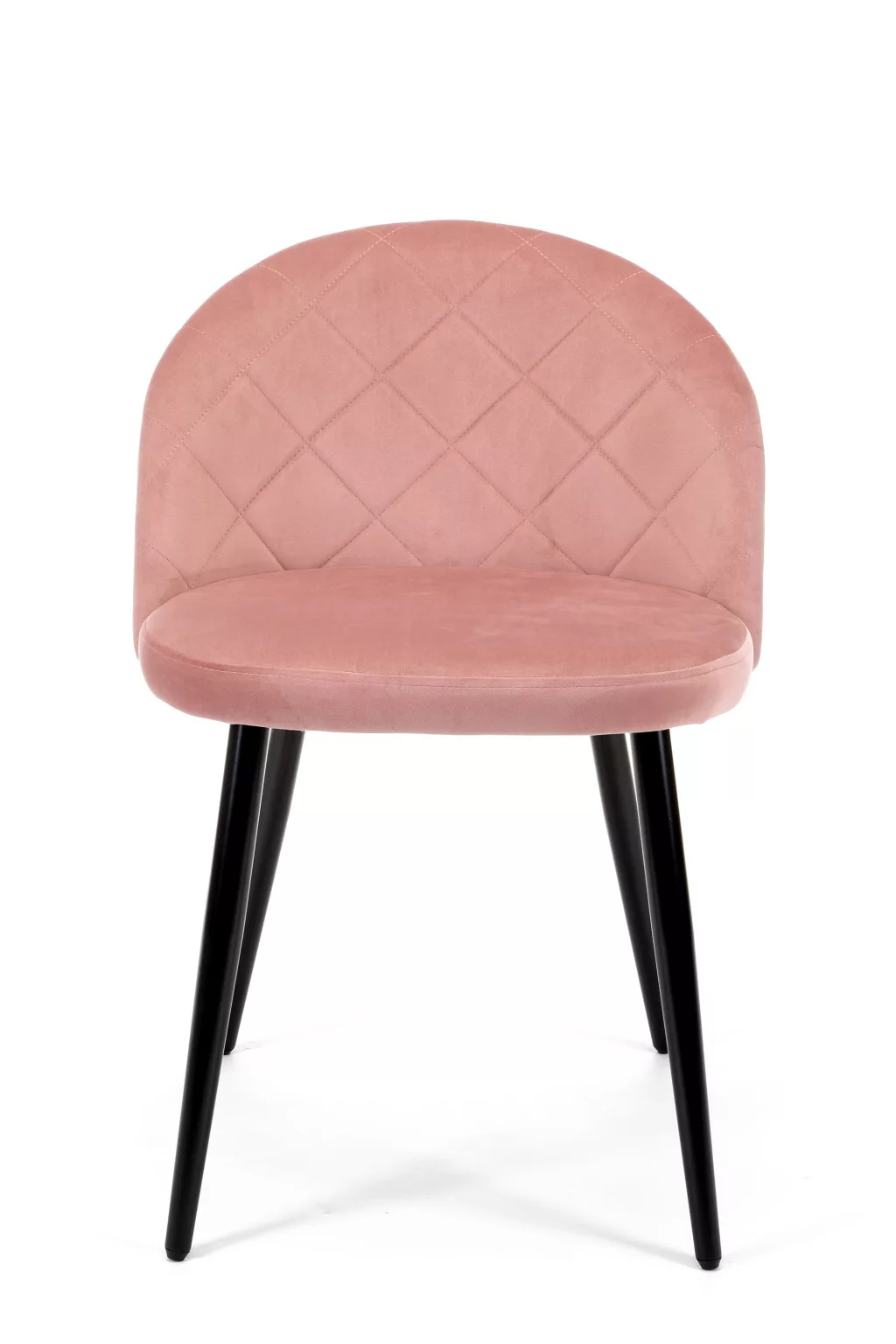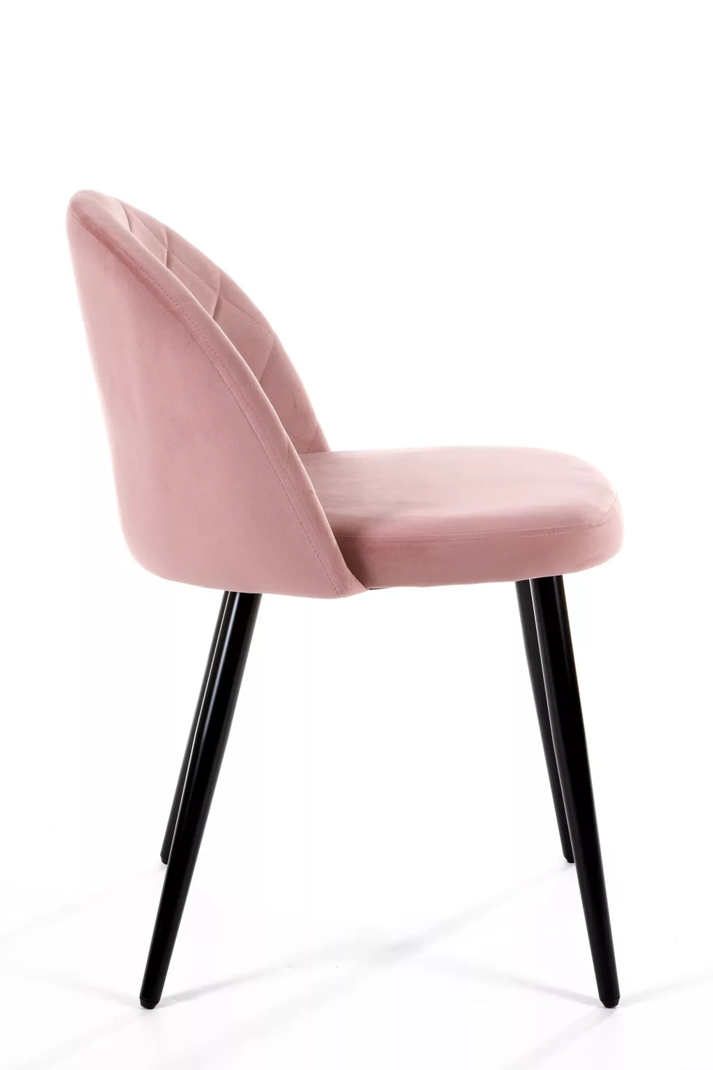 Az AKORD SJ.077 étkezőszék a modern design és a klasszikus kényelem tökéletes ötvözete. A puha, rózsaszín bársony kárpitozás és a steppelt háttámla nem csak szemet gyönyörködtető, de rendkívül kényelmes is. A fekete fémlábak stabil alapot biztosítanak, miközben elegáns kontrasztot képeznek a puha kárpitozással.