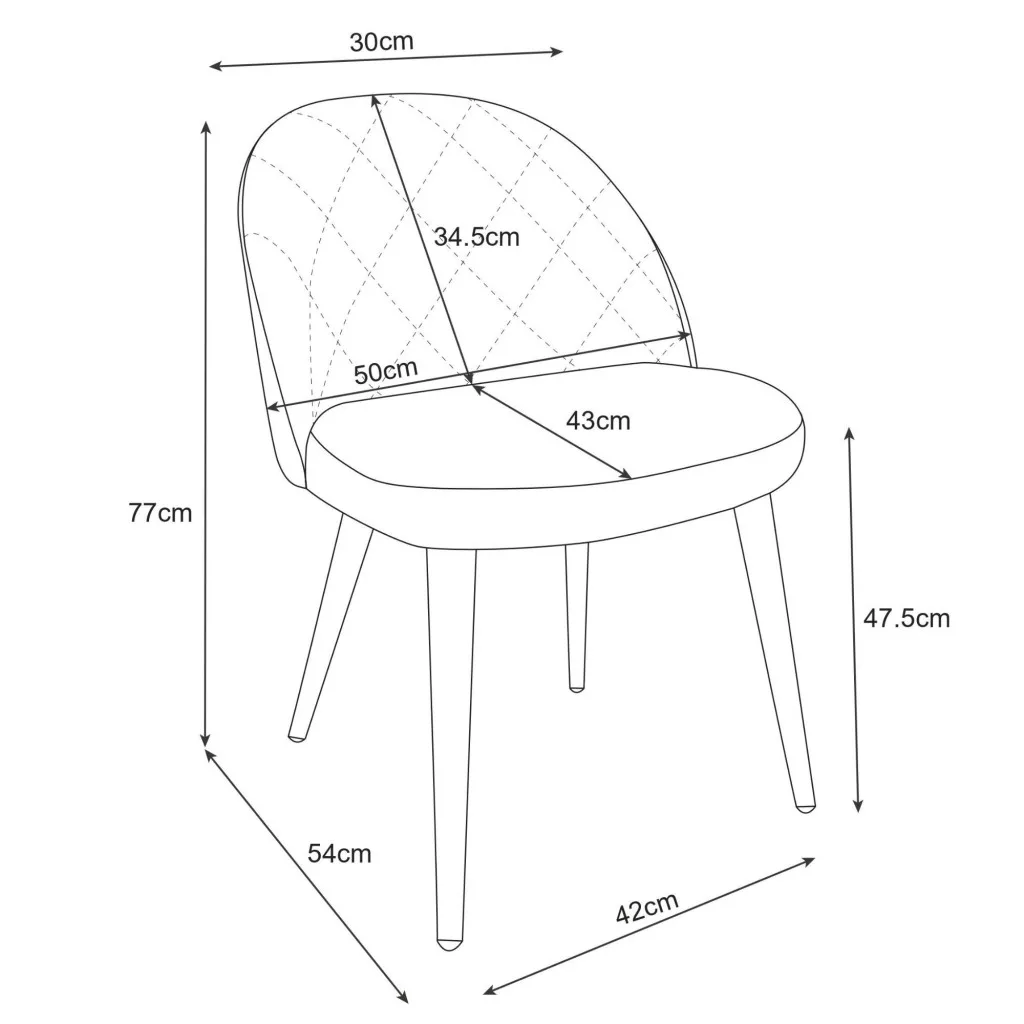 Elegáns, steppelt kialakítású bársony étkezőszék fekete fémlábakkal. Modern és kényelmes kialakításával tökéletes választás étkezőbe vagy nappaliba egyaránt.