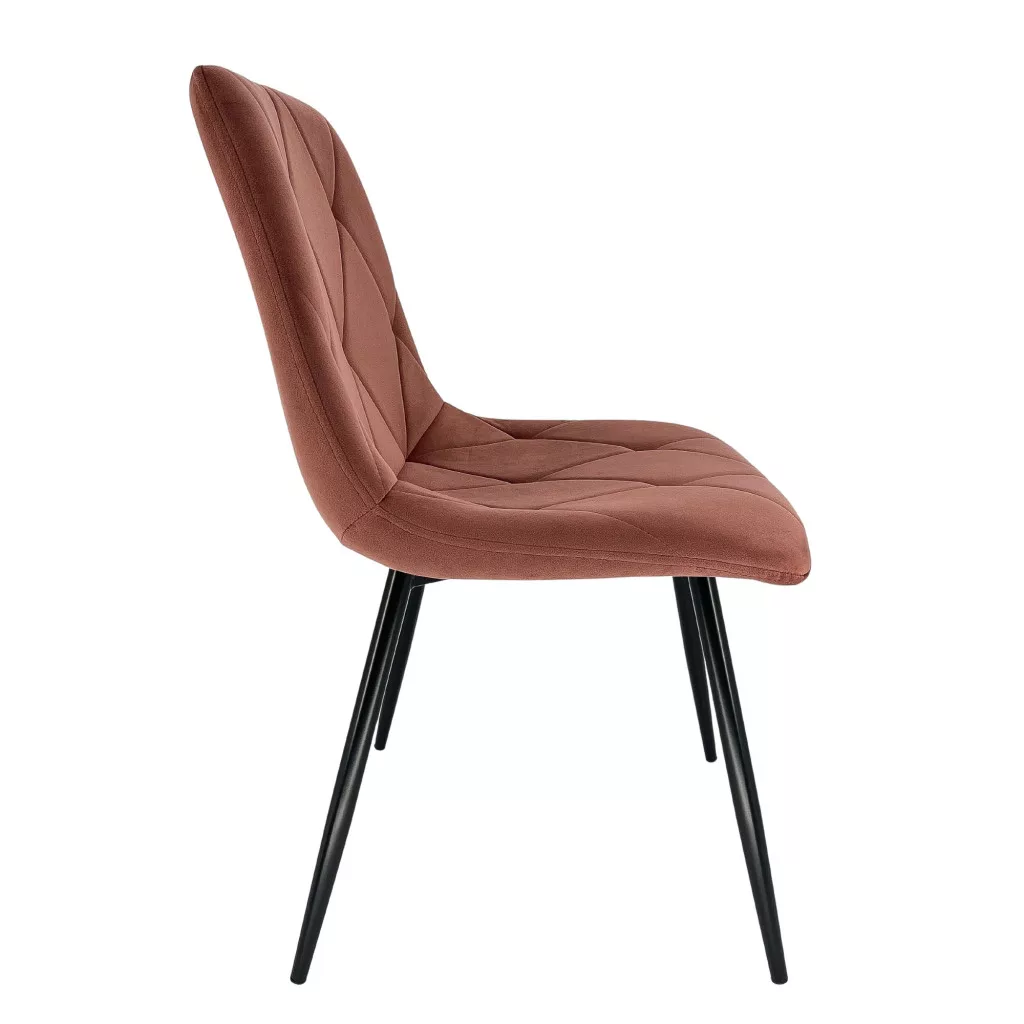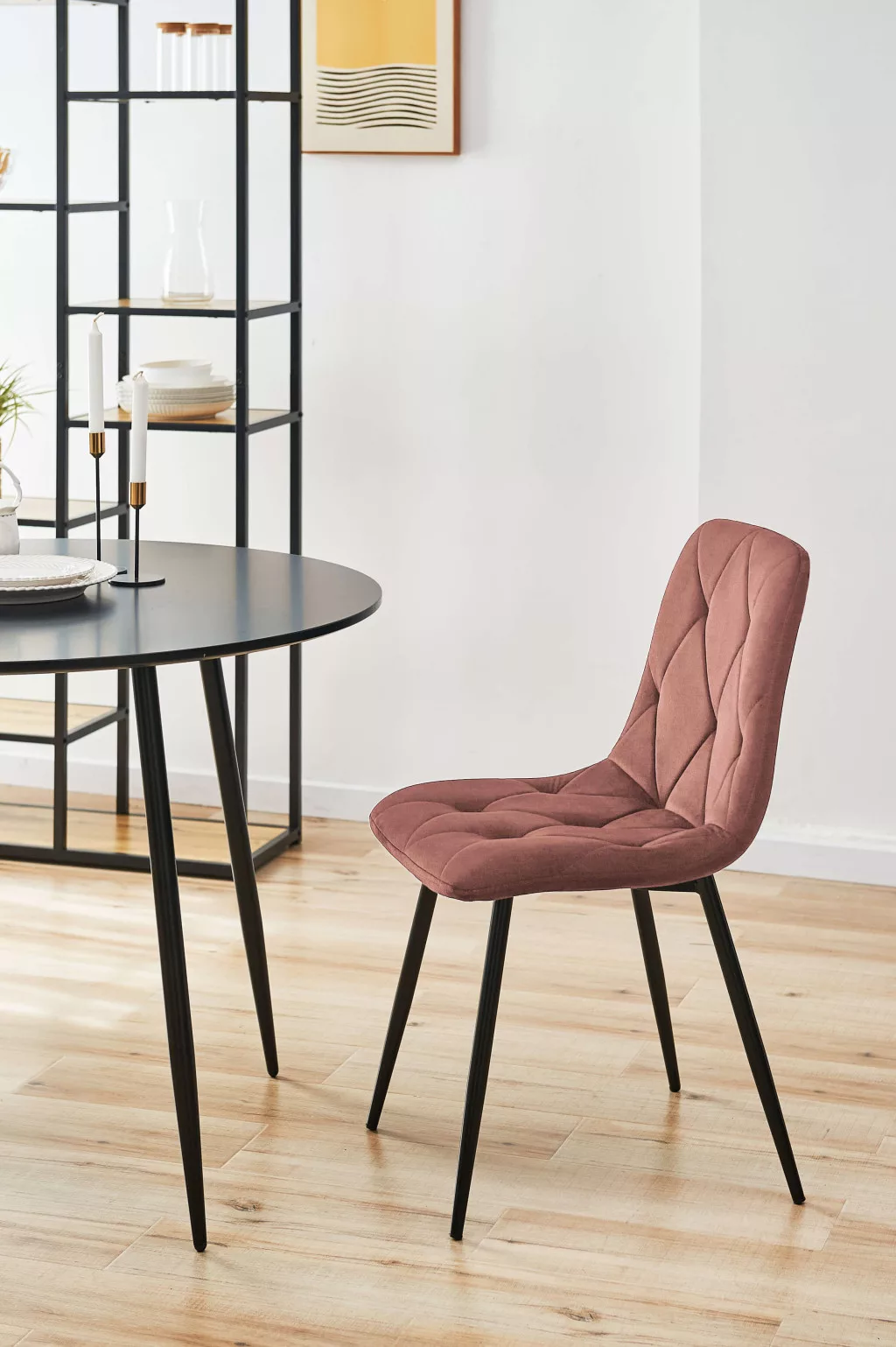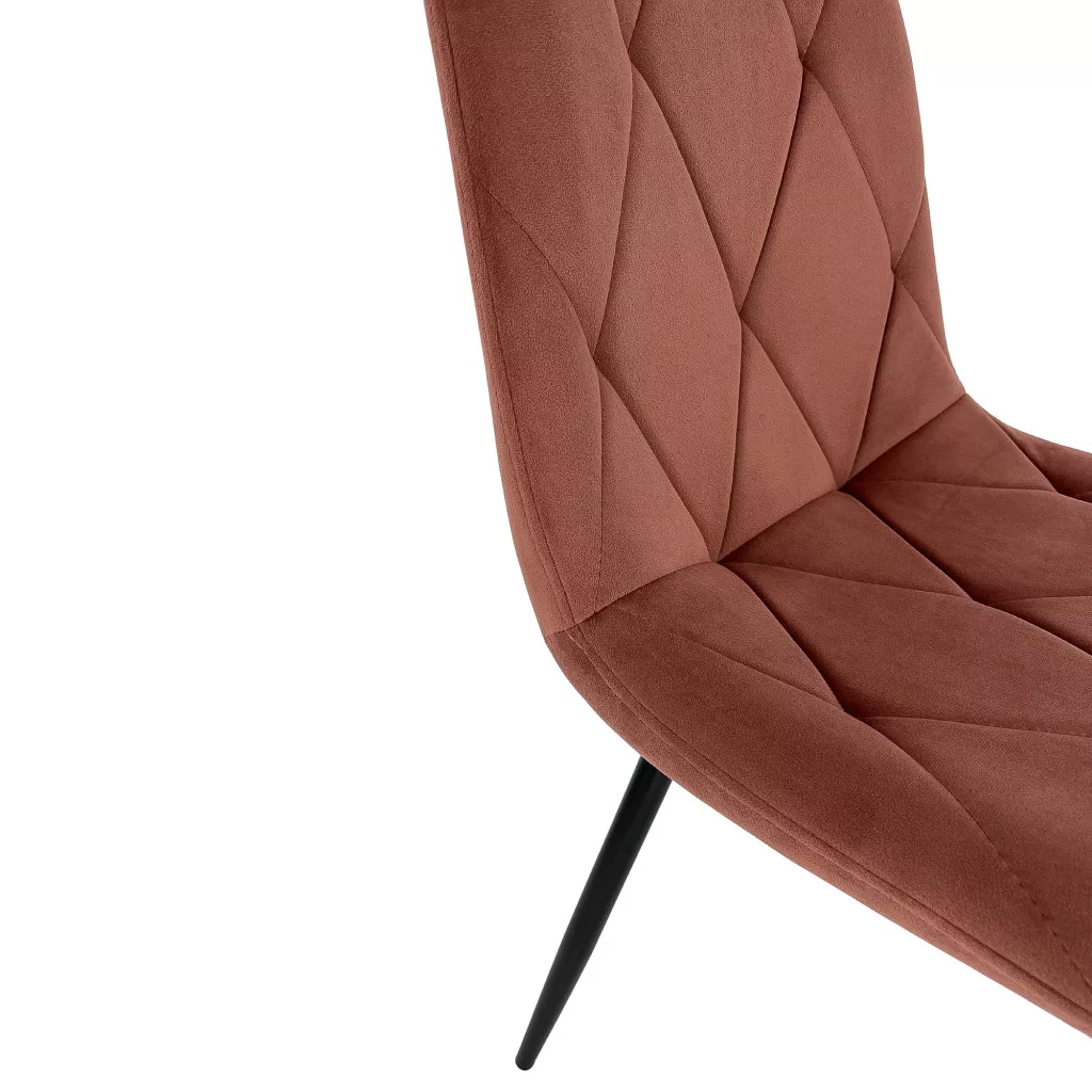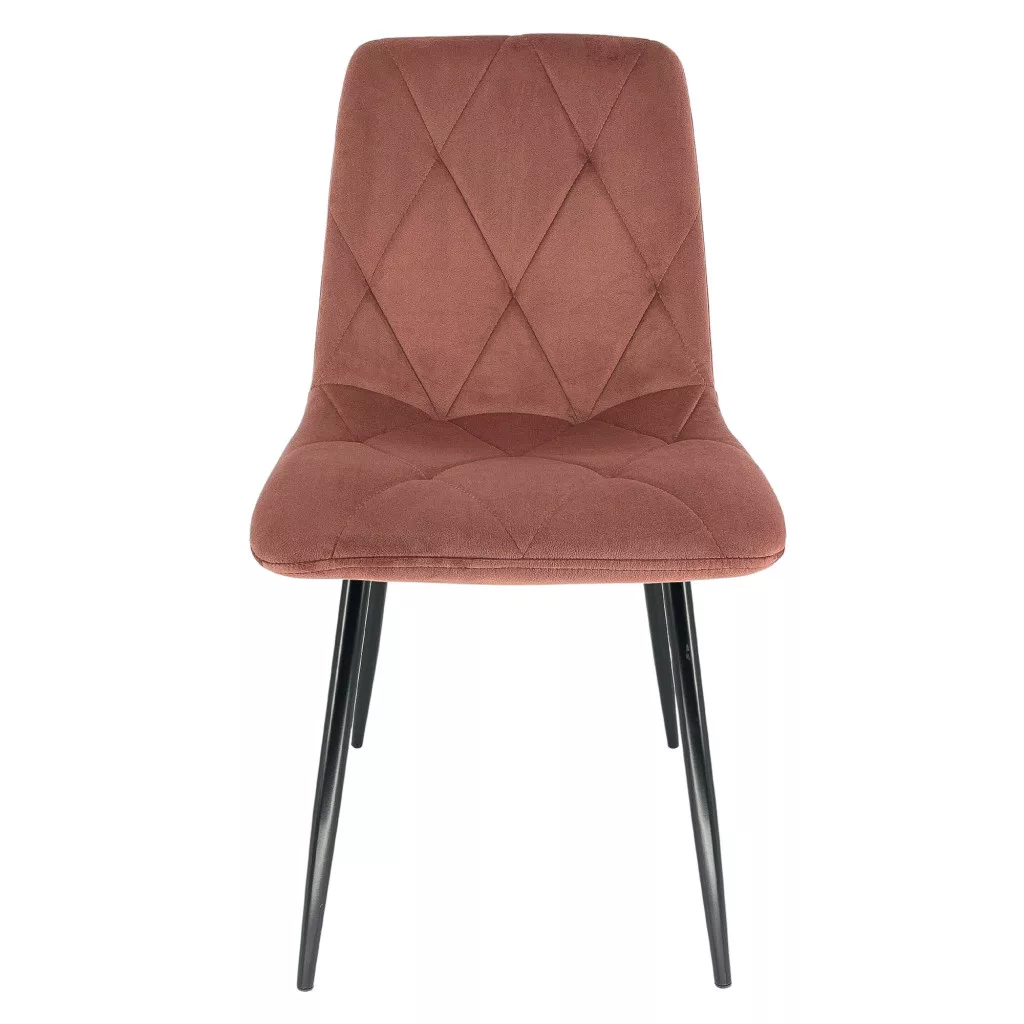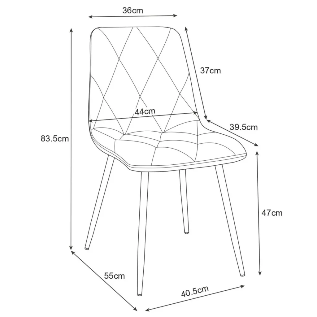 Elegáns, steppelt kárpitozású étkezőszék puha bársony huzattal és fekete fémlábakkal. Modern és kényelmes kialakítása tökéletes választássá teszi étkezőbe vagy nappaliba.